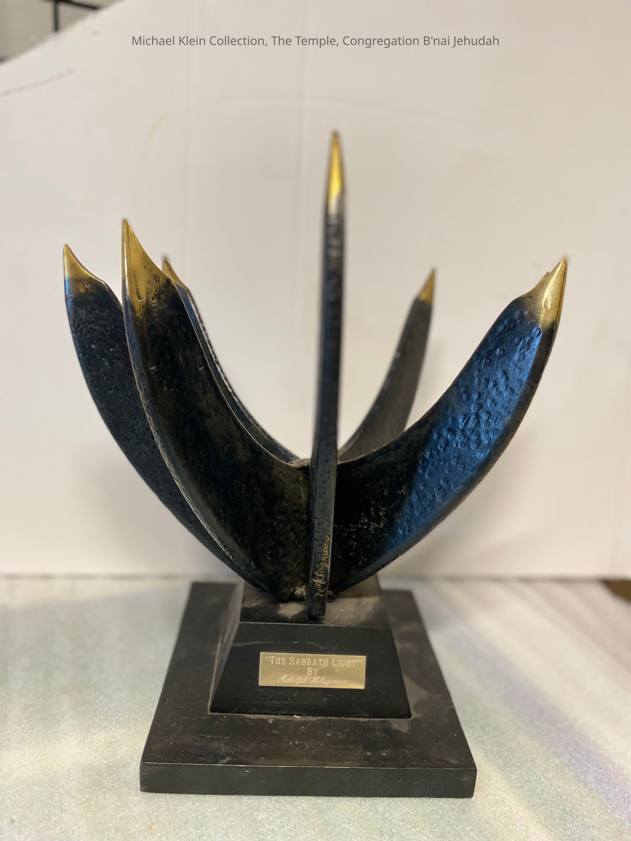 Presented to B'nai Jehudah by Hans and Serina Lorsch. Embossed design on each branch.Made/Created