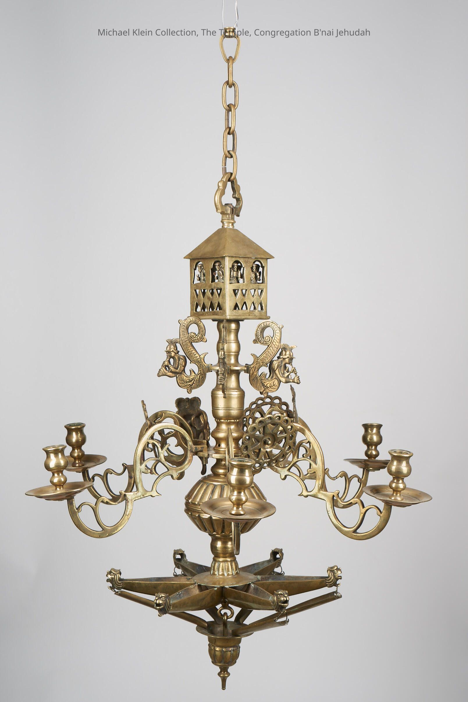 6 candle holders/oil spouts ending in lion heads