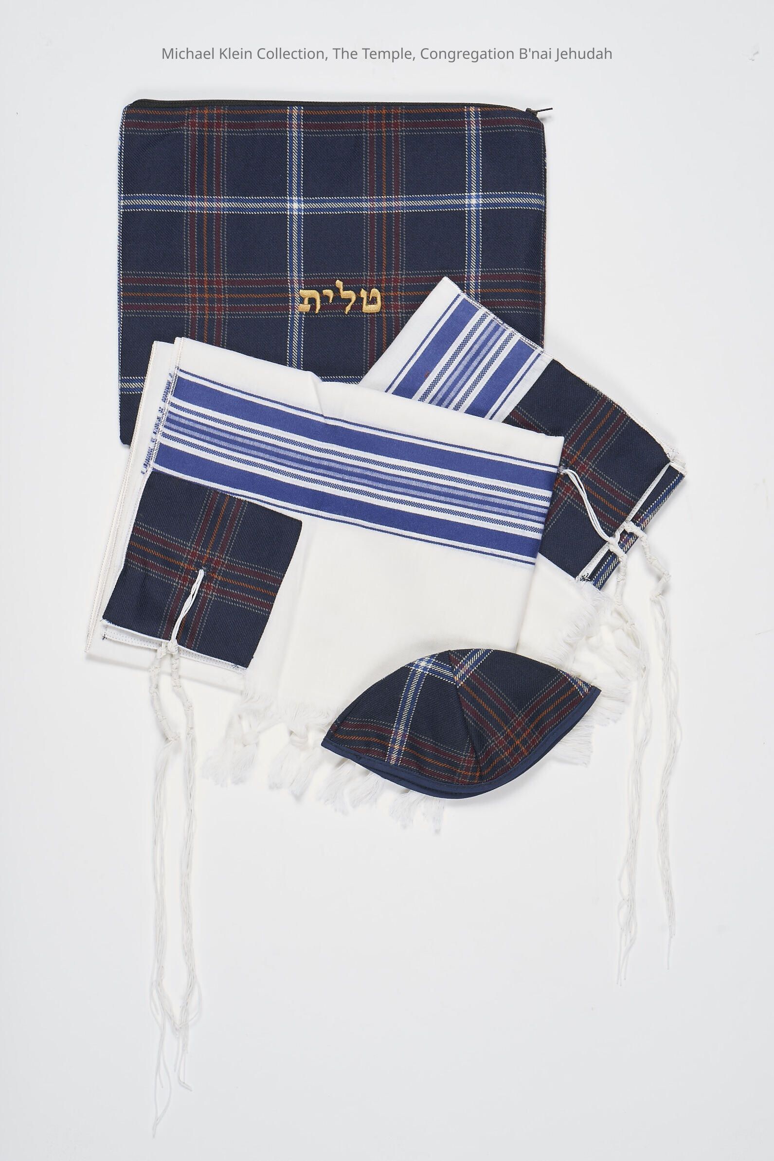 Religious experts and Tartan authorities worked meticulously to come up with a design that reflected religious values and Scottish history. The colors, weave, and number of threads have all been picked for their importance in Judaism. In the tartan design we have blue and white the colors of both the Israeli and Scottish flags with the central gold line representing the gold from the Ark in the Biblical Tabernacle and the many ceremonial vessels. The silver is to represent the silver that adorns the Scroll of the Law and the color red is for the traditional red kiddush wine. There are seven lines in the central motif and three in the flag representations - both numbers of great significance in Judaism.Made/Created