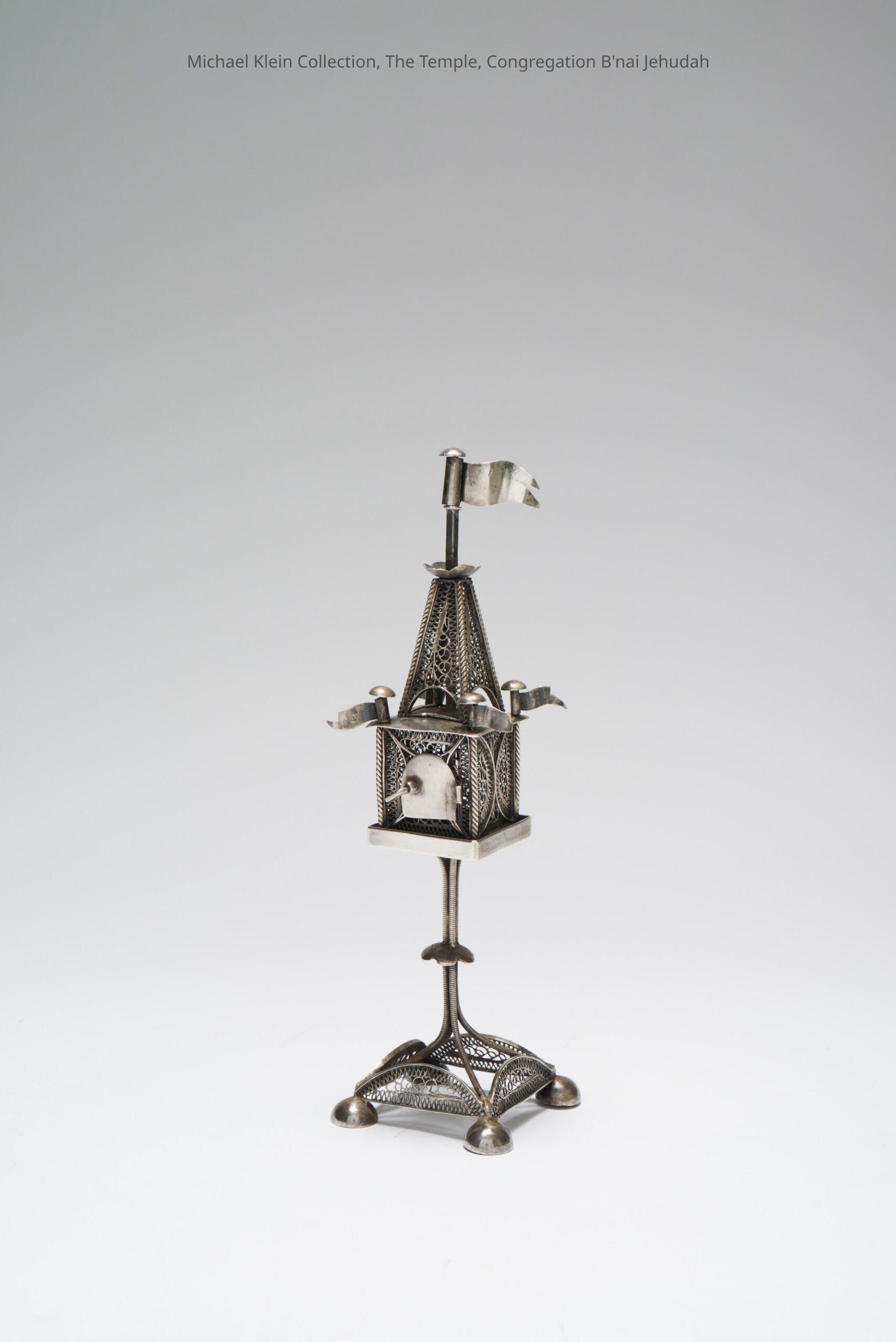 Wire work tower with five flags. Marked on back.Made/Created