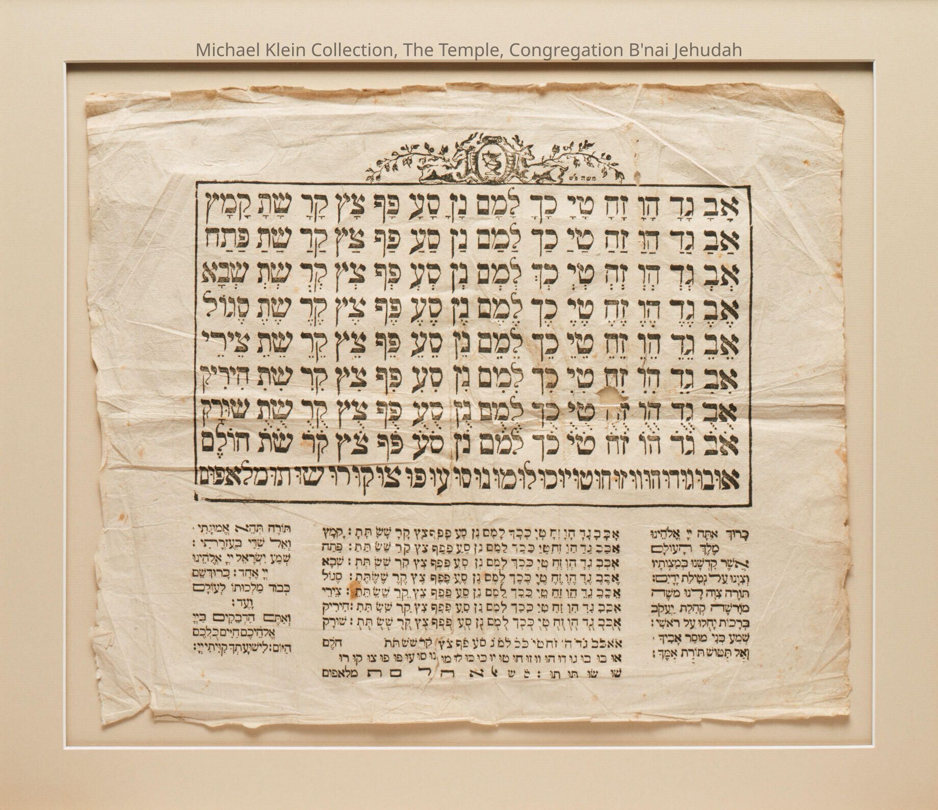 Text of basic morning prayers. Woodcut at top: ewer flanked by stags.Made/Created