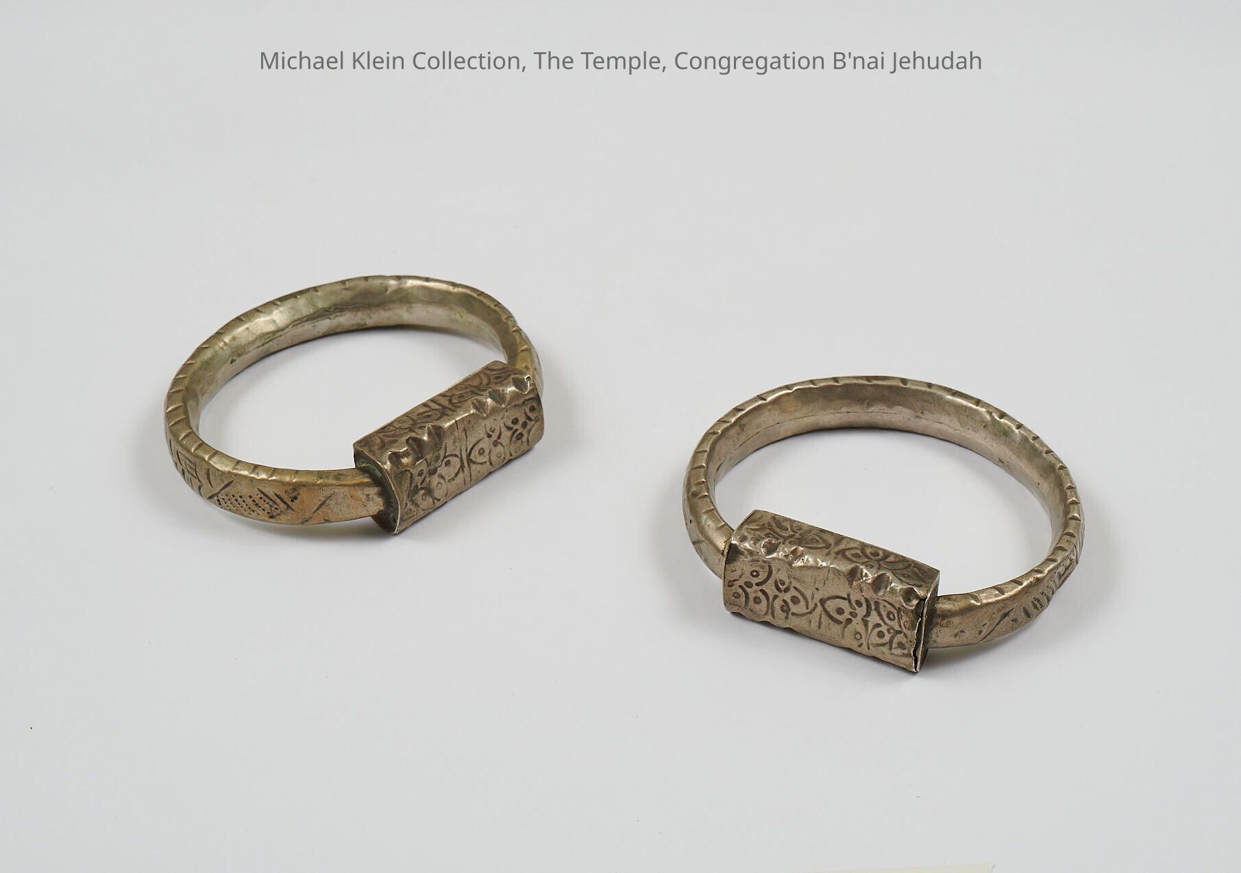 Pair of circlets to be worn on the legs. Engravings of fish (protection from the evil eye, sign of fertility). Small compartments to guard "the right" and "the left."Made/Created