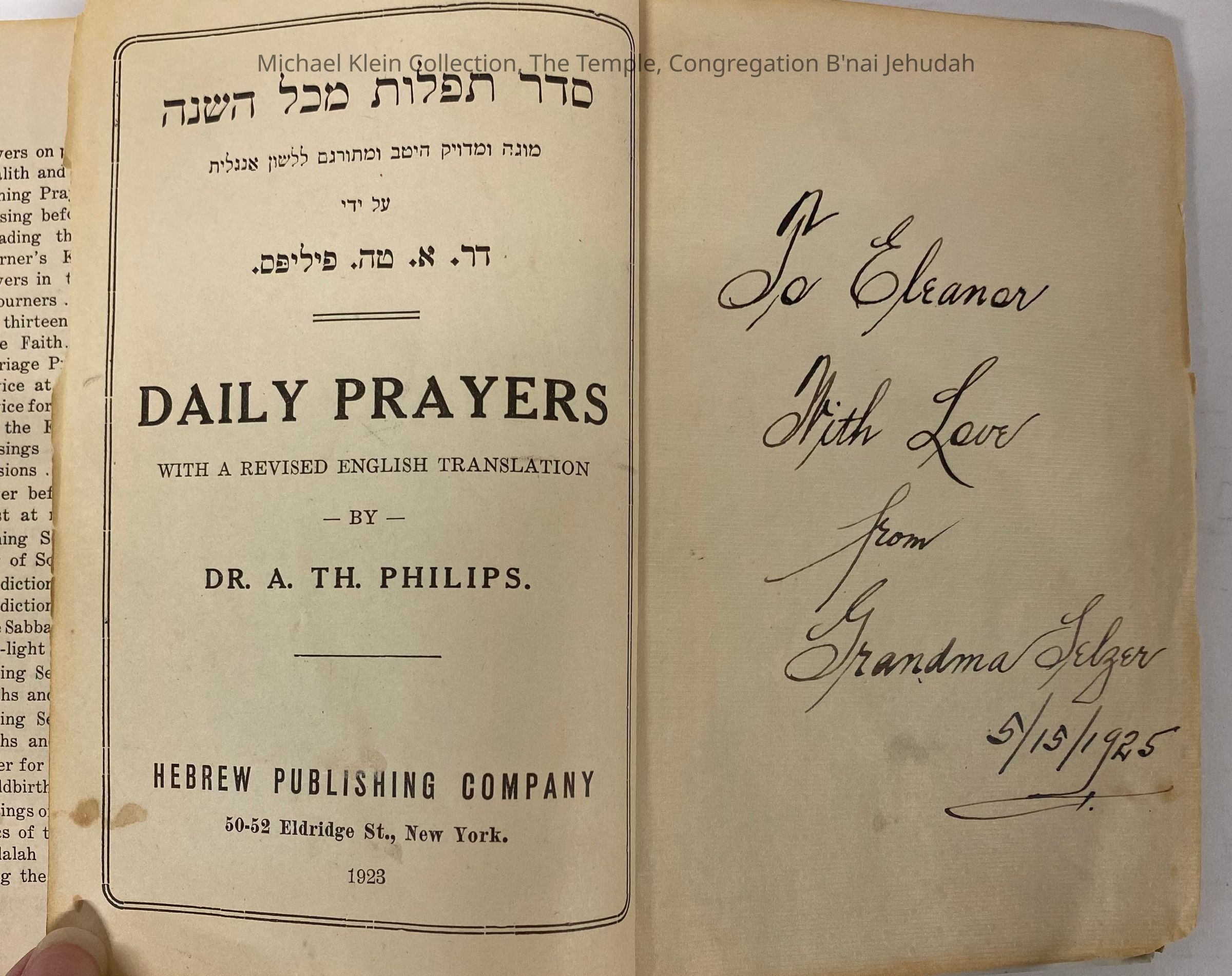 Given to Mrs. Joseph Wolff, nea Eleanor Reutzes* on her 1925 confirmation from TBJ, a gift from her maternal grandmother Lottie SelzerMade/Created