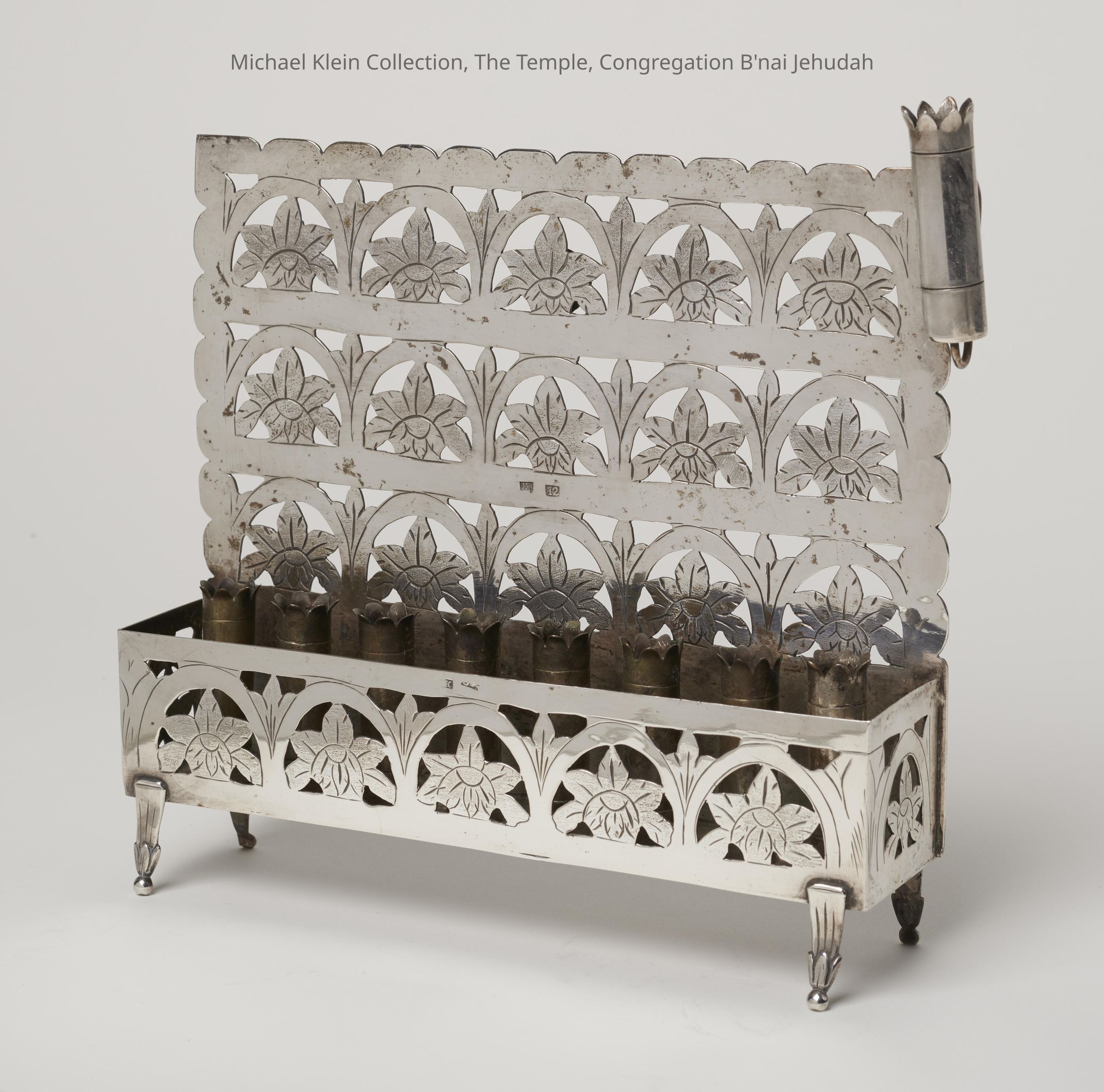 Holds candles. Back panel in 'papercut' style, flower motif repeated in three rows.Made/Created