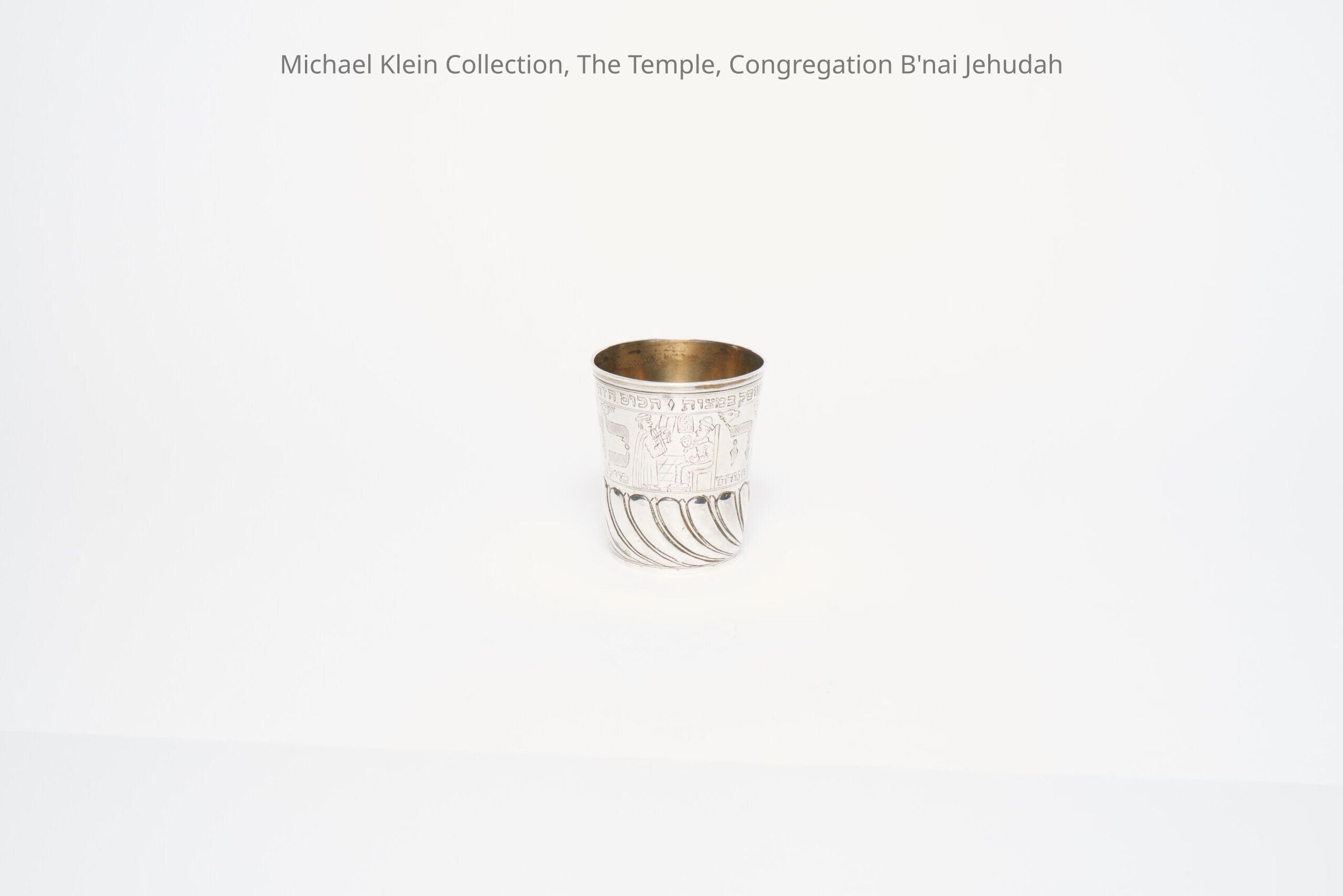 The cup was originally made in the late 17th or early 18th century, and an engraving was added later, probably in the 19th century. In addition to a circumcision scene, the cup is engraved with "Cup of Blessing" (large text in the middle); "This cup, I bought myself, the humble Zeligman Ettling, for Good Deeds" (small text on rim); and "And not for any retribution, but to honor the Almighty and His Torah" (small text on bottom).