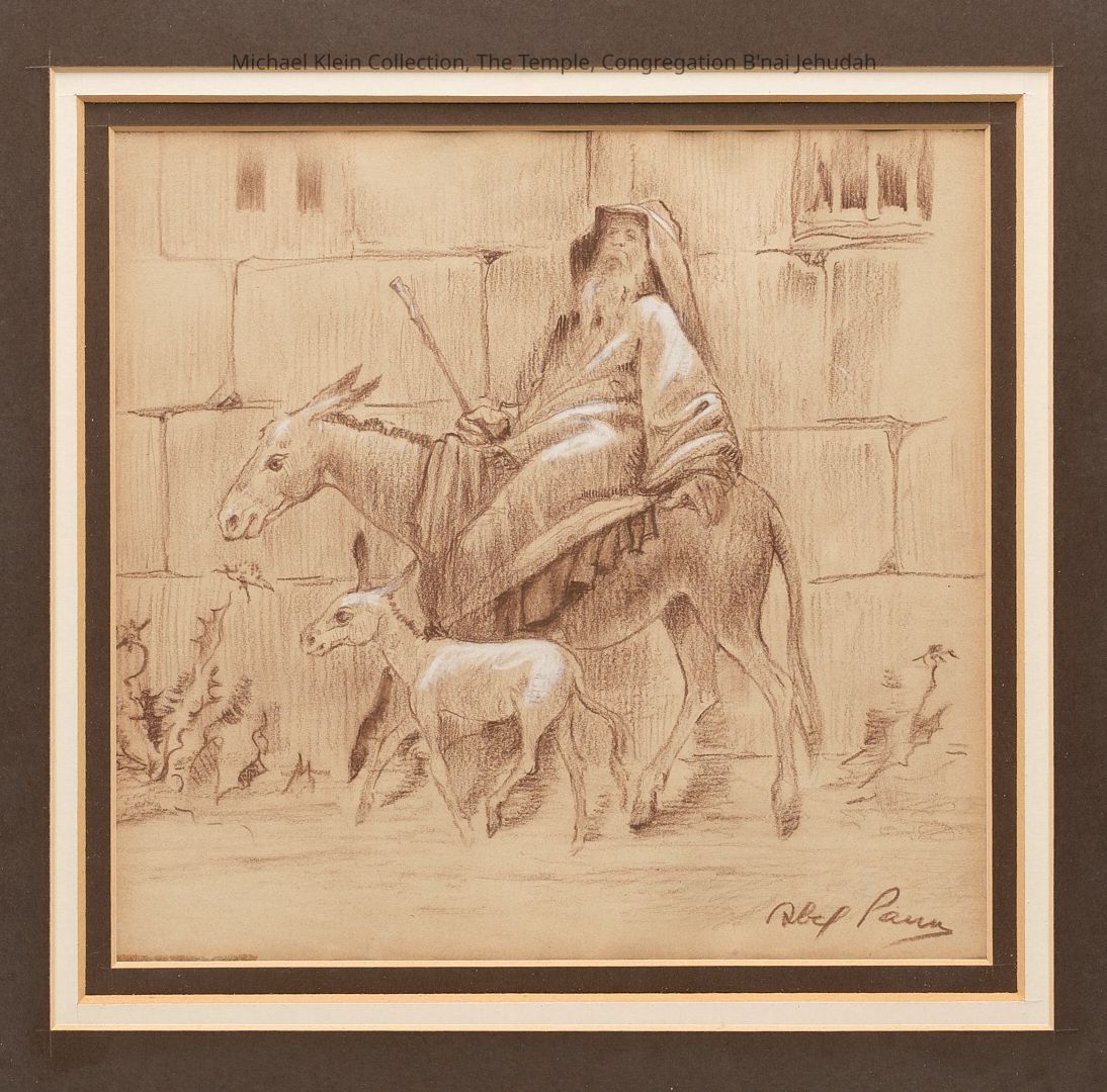 Balaam and Anthon in a pastel drawing by Albert Pann (1883-1963), who is considered one of the greatest Jewish painters of the 20th century. Pann was born in Poland to a father who was a rabbi and head of a yeshiva, and studied painting in Odessa. His first paintings expressed with vivid impressions the suffering of the Jewish peiople throughout the ages. In 1921 he returned to Jerusalem and painted the series of Bible paintings expressing the European oriental concept, with the presentation of the iblical figures as the inhabitants of the East at that time.Made/Created