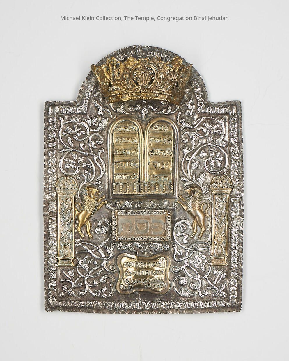 Floral and scroll ornaments. Applied columns, rampant lions, Decalogue & crolon/crocon.