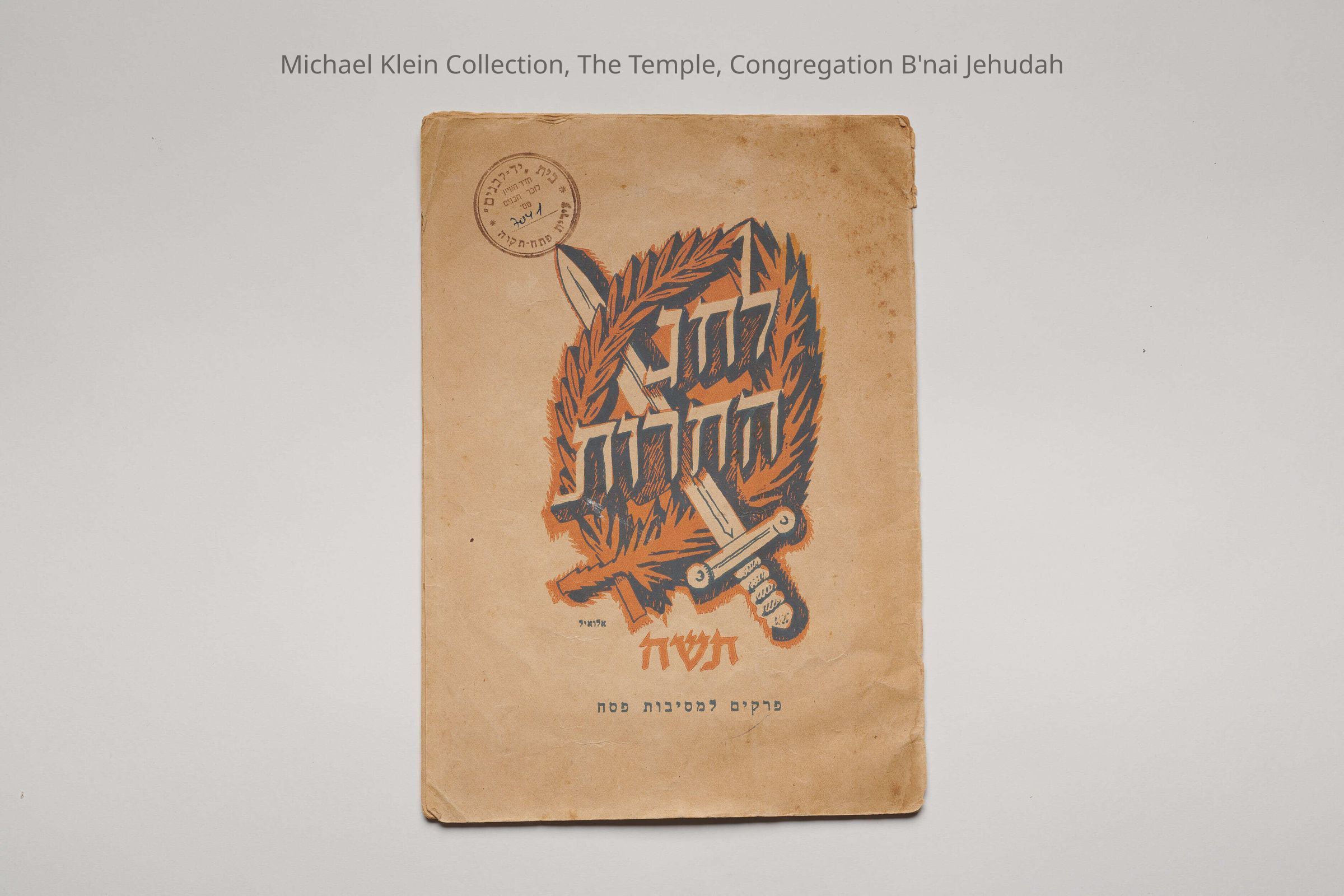 See file for complete Sotheby's description. Published in advance of Passover 1948. Text is largely traditional for Passover, though includes readings from modern Hebrew authors like David Frischmann and Hayyim Nahman Bialik. Illustrations by Arieh Allweil were meant to evoke the Zionist ethos of the period leading up to the War of Independence. Military-themed scenes; instructions to make four toasts to the Hebrew state, the Haganah, immigration to Israel, and the reader's military unitl, suggest its primary audience was members of the Haganah--indeed, inscription in this copy mentions the 1948 Seder held by battalion 332 of the Alexandroni Brgade, which would go on to participate in a difficult battle for control of Latrun in late May 1948.Made/Created