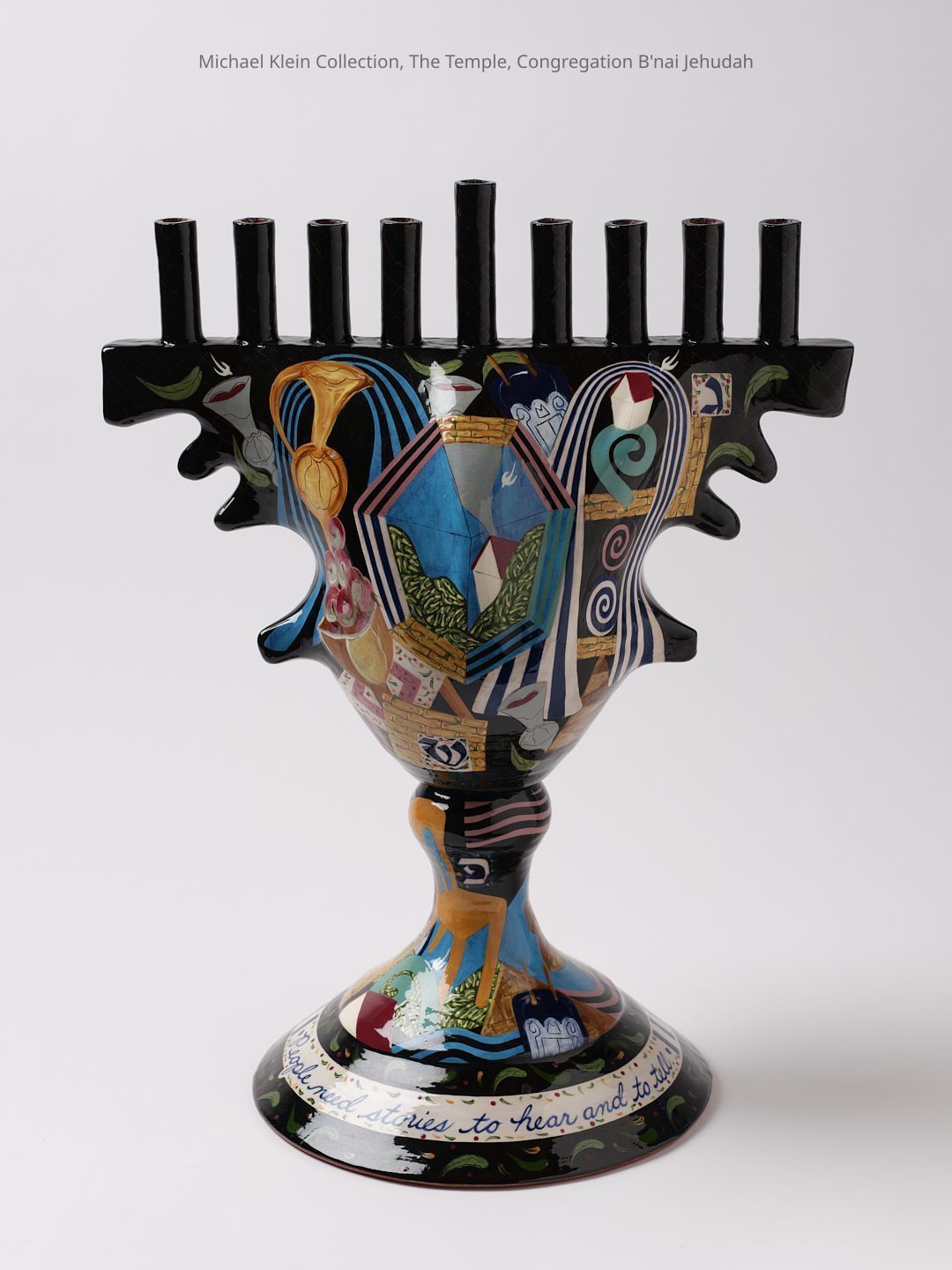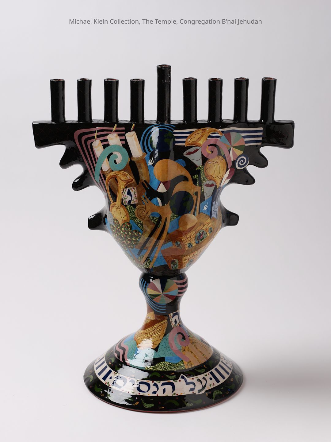 Finalist, 1994 Phillip and Syliva Spertus Judaica prize. Glazed ceramic, painted with motifs including a Tora in a mantle, dreidels, Noah's Ark and the dove, the Western Wall, and Rachel's Tomb. A Hanukkah lamp by Lipnick of the same form, but with slightly different painting, is in the collection of the Minneapolis Institute of Art, 2005.145.2Made/Created