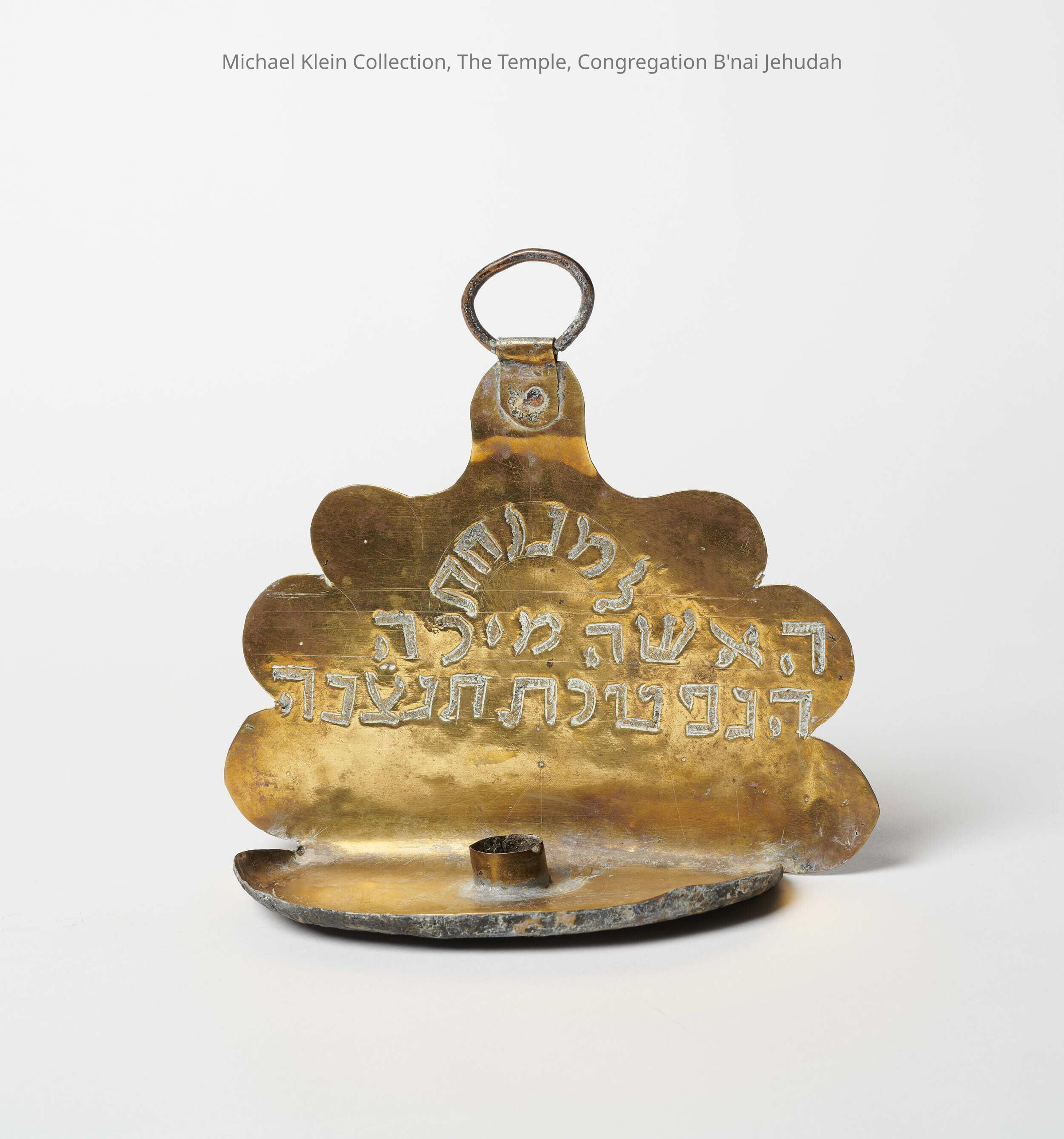Scalloped back plate. Dedicatory Hebrew inscription (using customary abbreviation): to the eternal rest of the woman, the late Mira, may her soul be bound up in the bond of everlasting life." Suspension ring.Made/Created