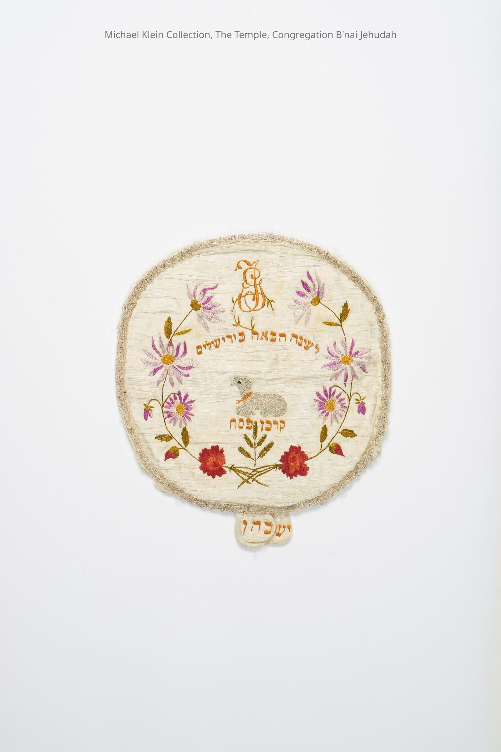 Embroidered with beads. Lamb at center. Fabric is deteriorating.Made/Created