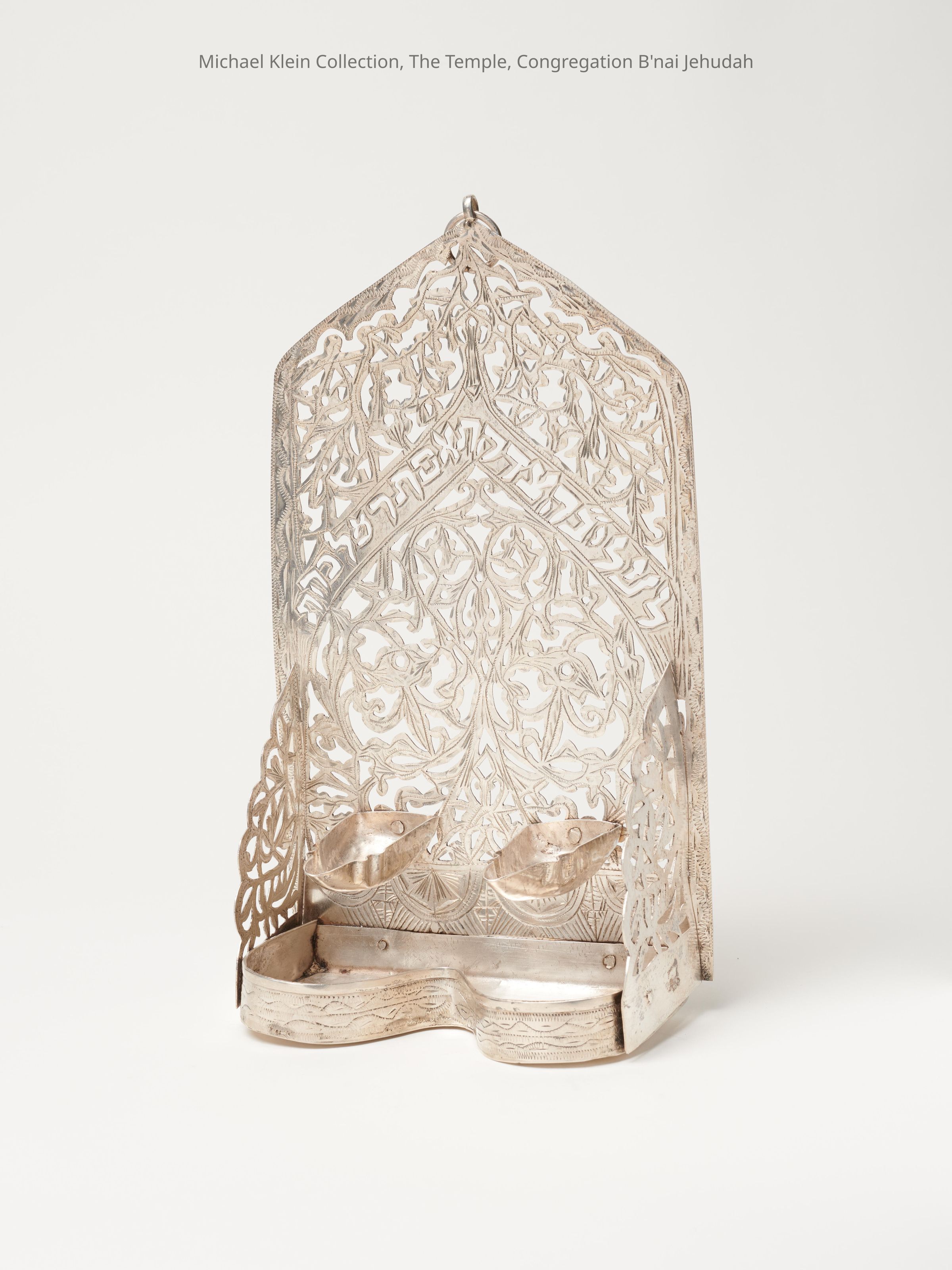 "In memory of the departed soul of the righteous woman Esther Malka "T" " Arched back plate, pierced and engraved. Two fonts.Made/Created