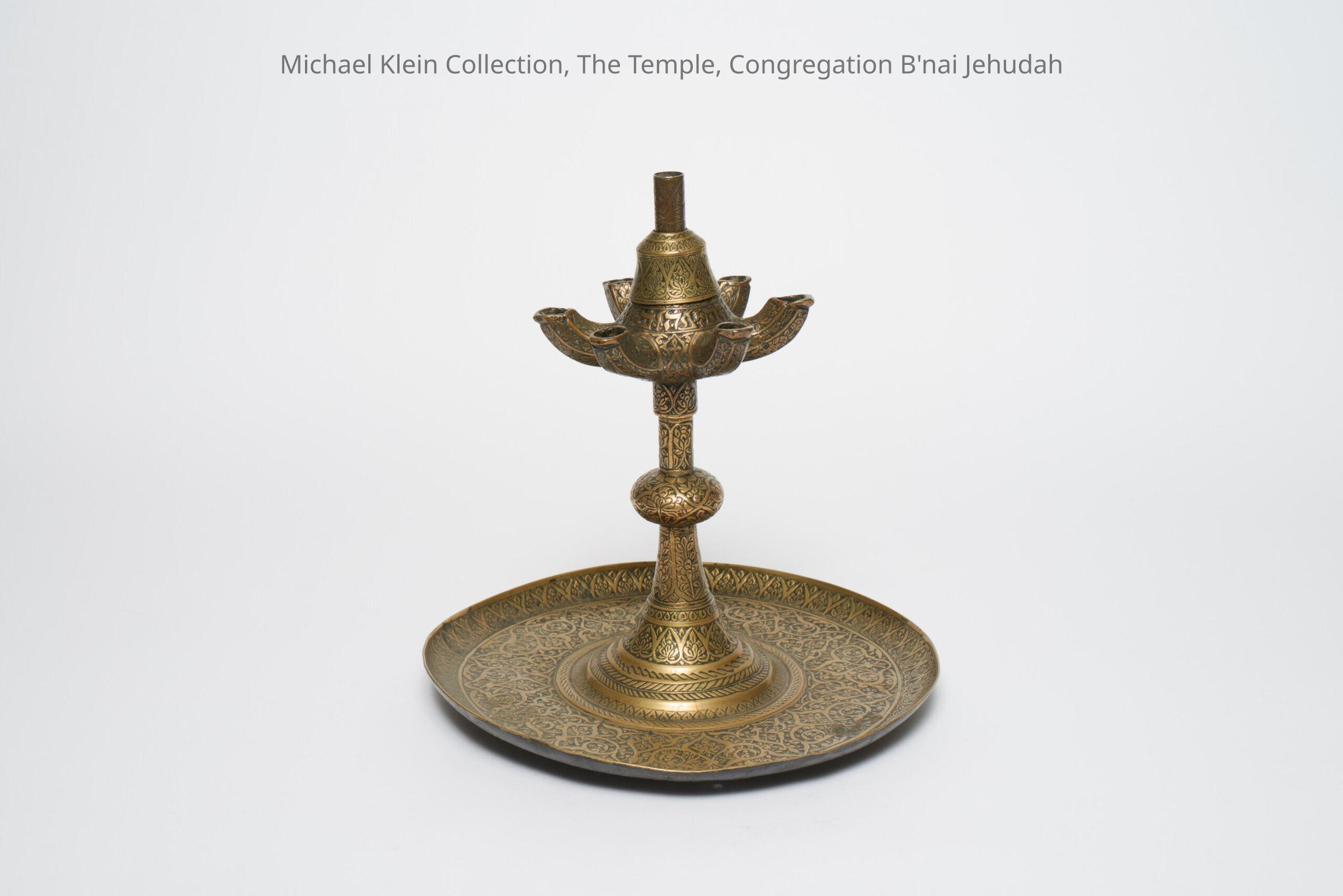 Hebrew: "Loving God fearing God". Lamp is from 18th century, early. Cap is different maker, late 18th centuryMade/Created