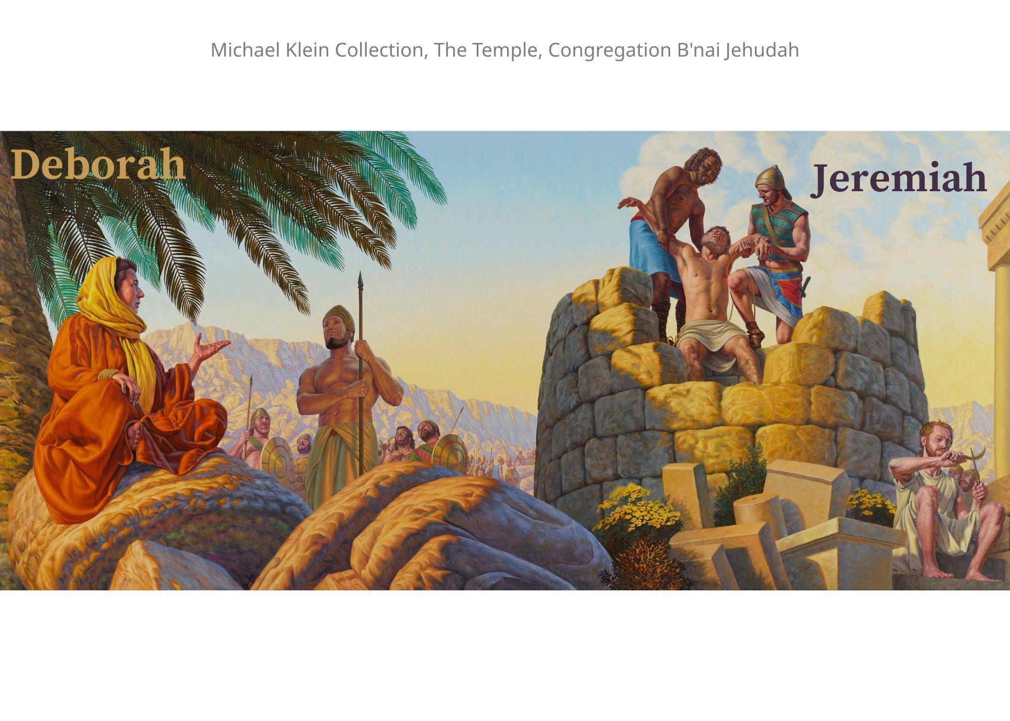 Depictions of Hebrew prophets: Aaron, Moses, Miriam, Ezekiel, Deborah, Jeremiah, Isaiah, Esther, Solomon, Daniel, Hannah, Samuel, Abigail, and Joshua and Caleb.Made/Created