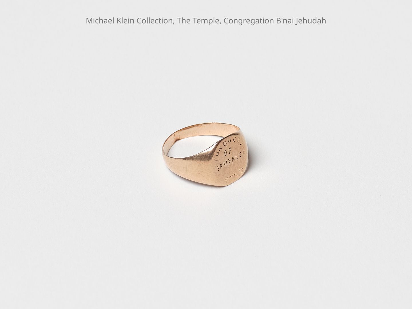 9K gold ring, souvenir from the conquest of Jerusalem by the British Army, 1917. Bears an engraving: "Conquest of Jerusalem, 9.12.17". Size: 8.5 US. Weight: 3.2 grams. Hallmarked.Made/Created