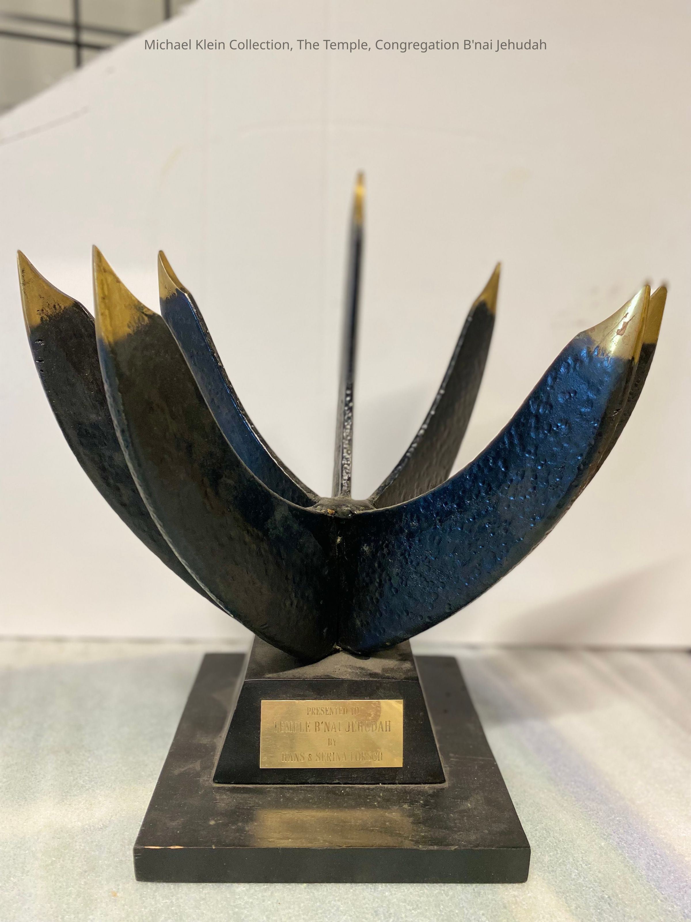 Presented to B'nai Jehudah by Hans and Serina Lorsch. Embossed design on each branch.Made/Created