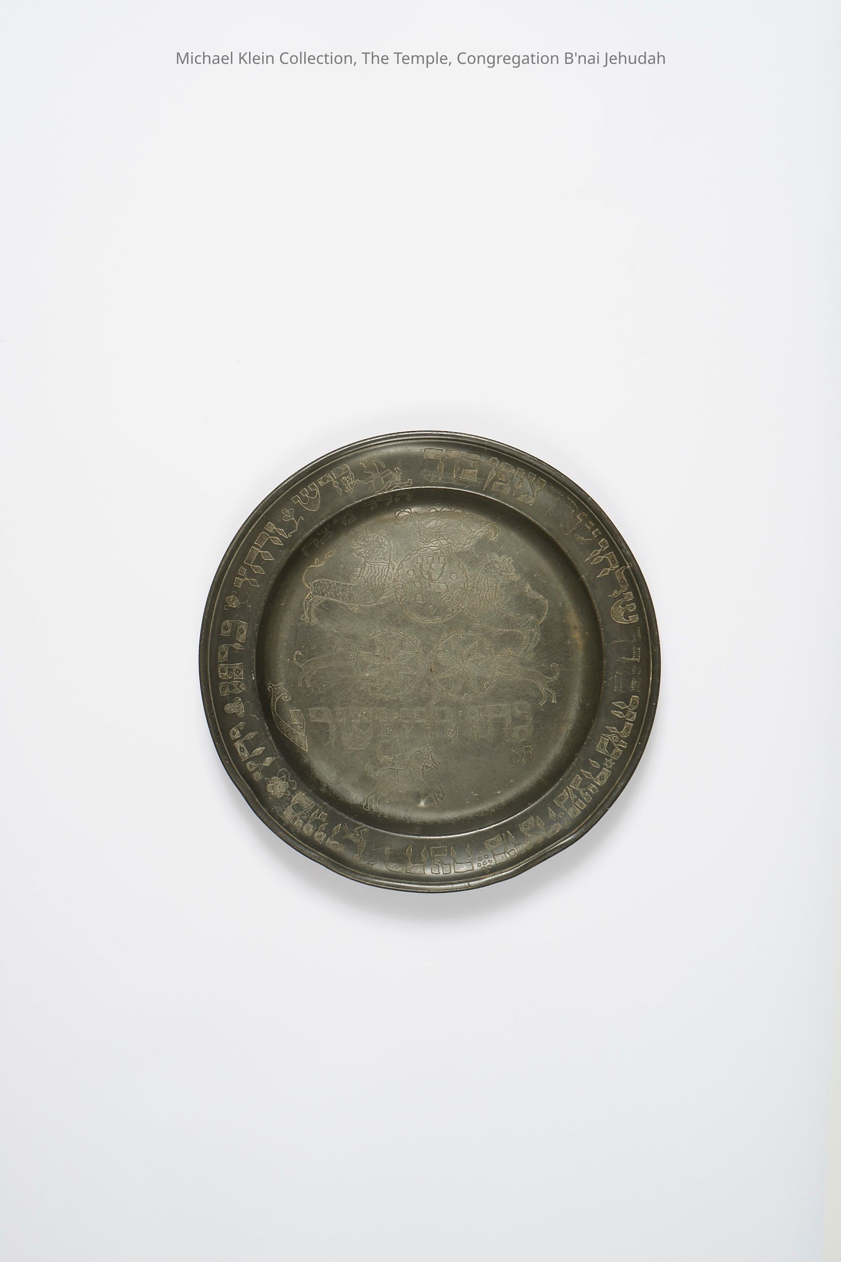 Order of Seder around rim. Central inscription: Kohen Levi Israel. Top inscription: praise/pleasingMade/Created