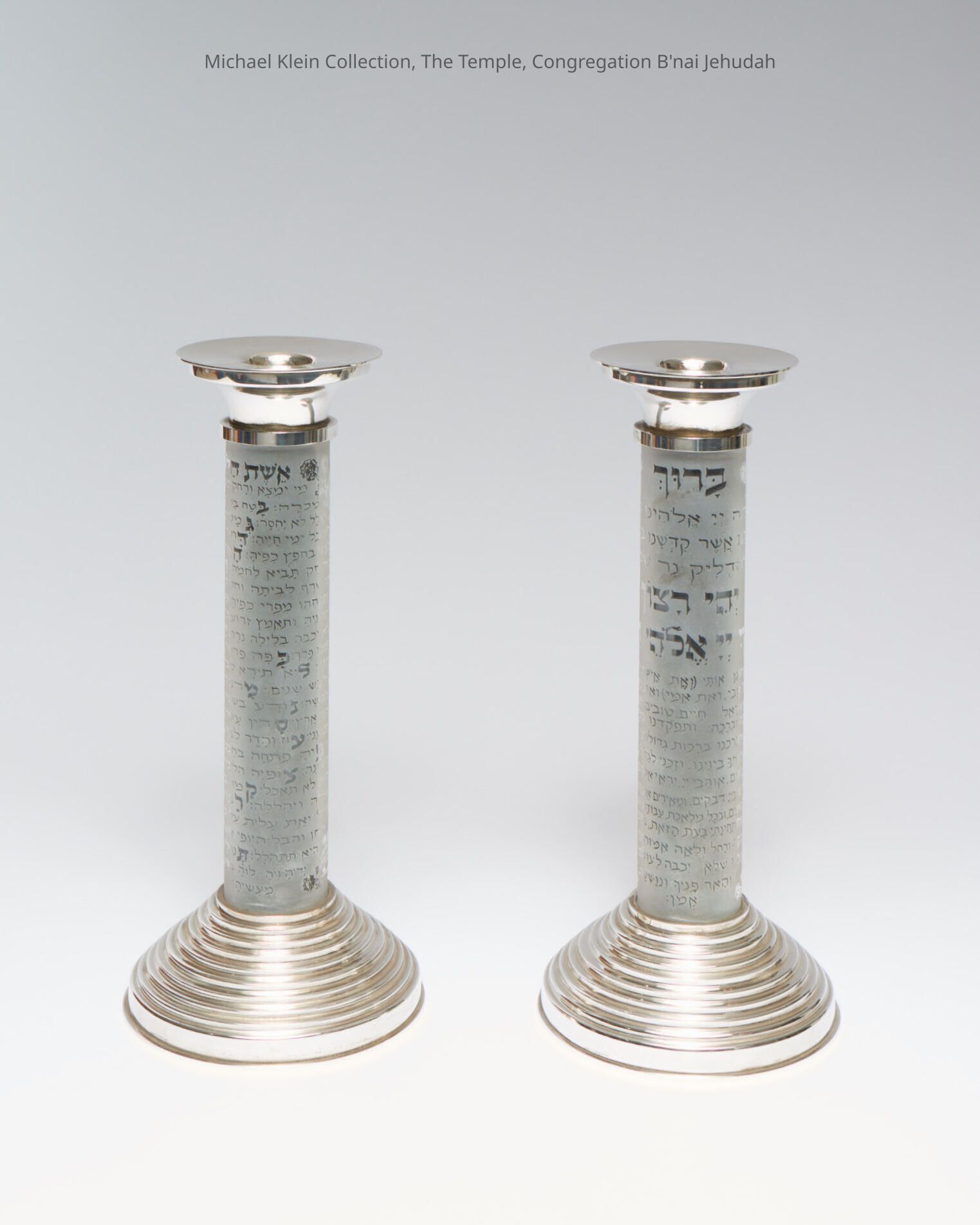 "Pillars of Light." Blessings in Hebrew on glass pillar.Made/Created