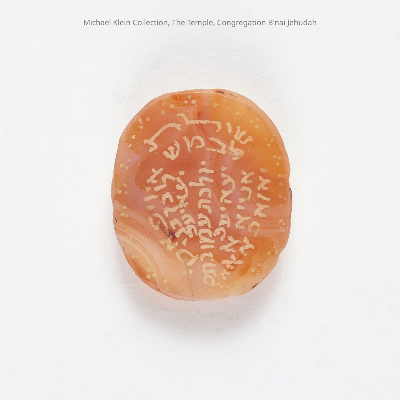 Small stone amulet in shape of menorah. Expresses hope for a baby boy, and that his soul will be, like King David's, as white as snow (free from sin).Made/Created