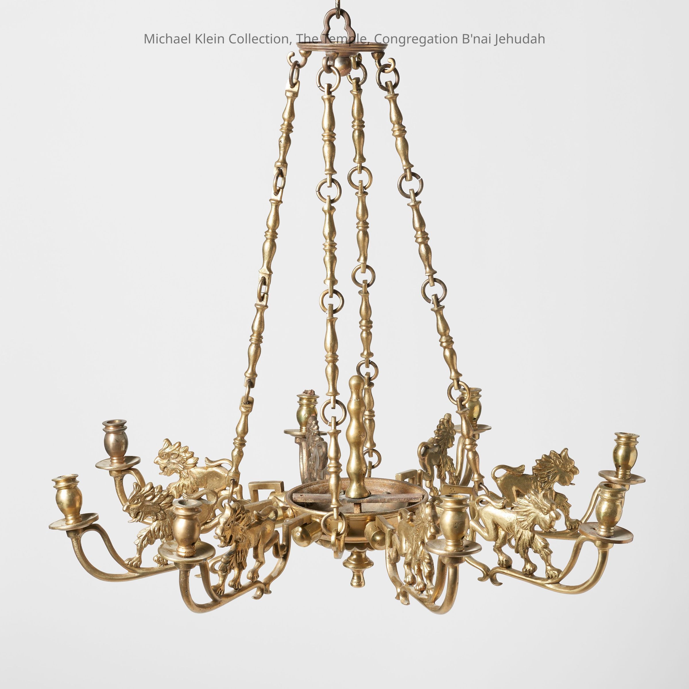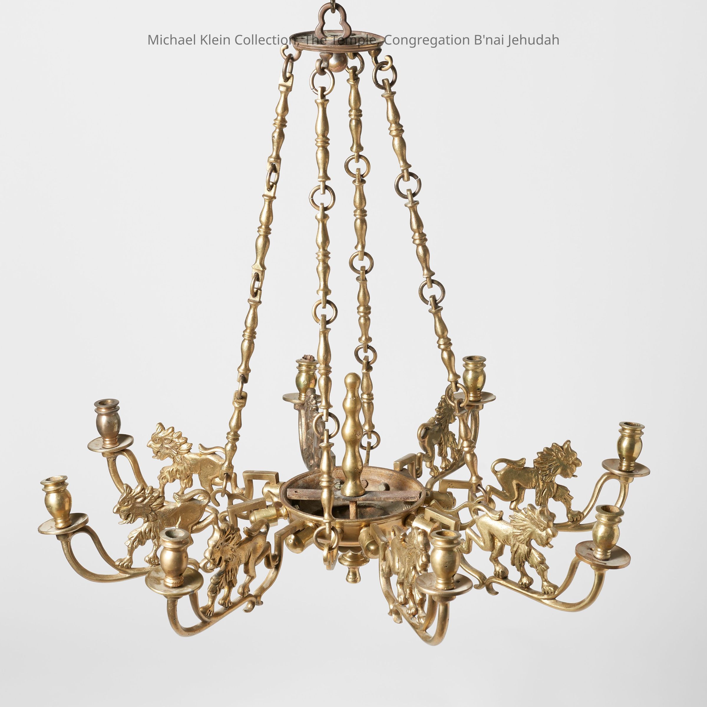 8 lions that serve to hold the candles and 4 holes to hold the 4 chains. The cast lions are detailed. (matches wall sconce)Made/Created