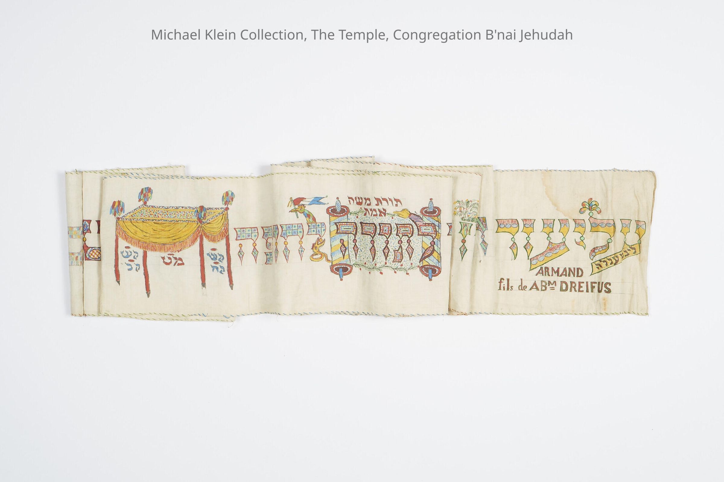 These textiles, used for keeping a Torah tightly closed when it isn't in use, date from 1901, 1889, 1894, and 1870.Made/Created