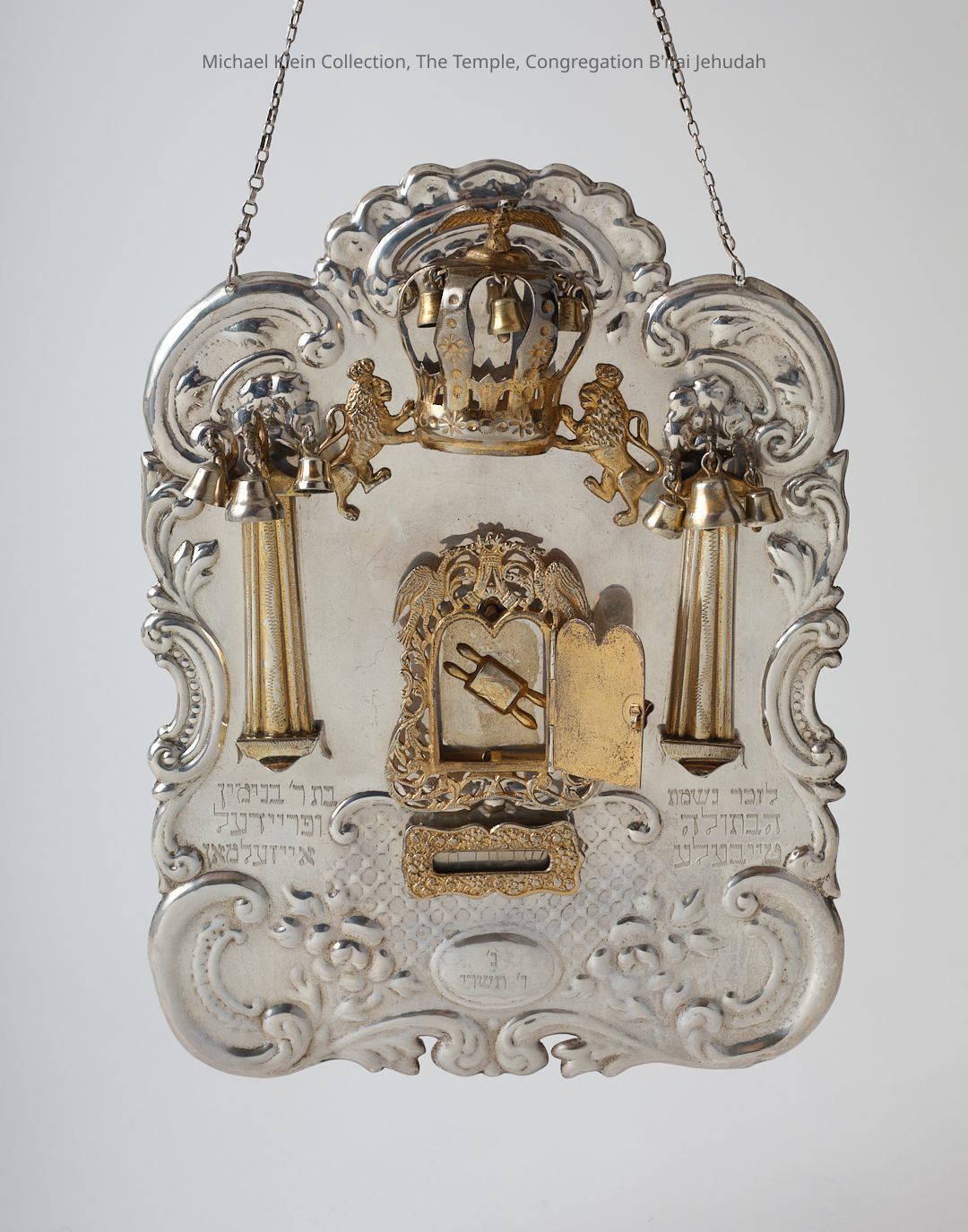 Ark at center opens to reveal a cast Torah. Silver chain.Made/Created