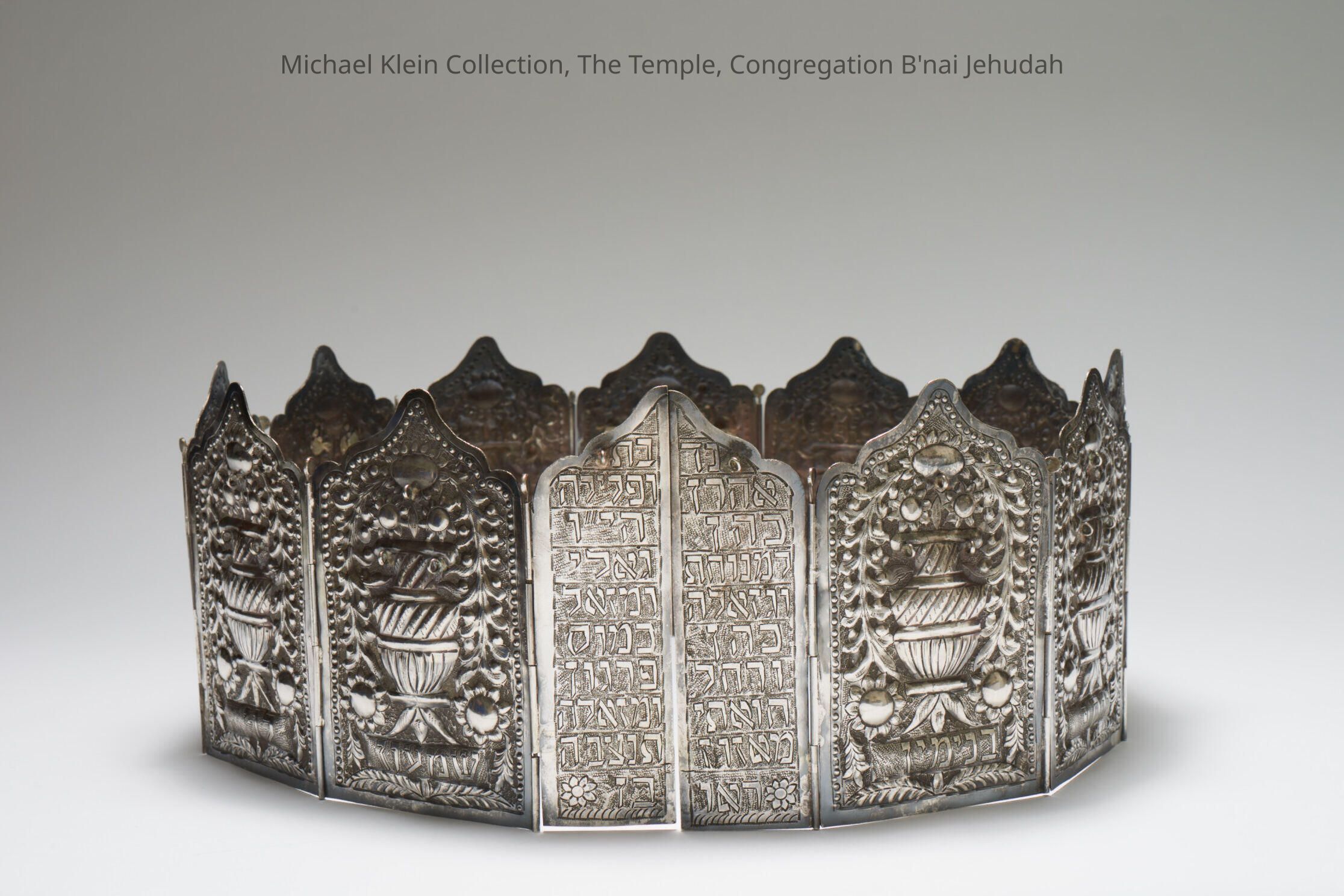 Each panel has name of one of the twelve tribes. Where two panels join is dedication inscription: "Donated by Aaron and Frida Cohen, may the lord protect and sustain them, for the repose of Gali and Gazla and Mazal Cohen; Camus and Rachel Fargon, Hawati Mazla Mazuz. May their souls be bound up in the bond of life, and Reuven." One of the families is of known rabbis.Made/Created