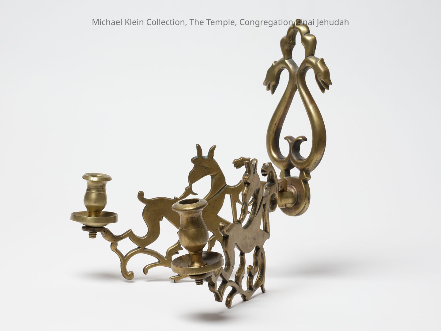 Wall lamp with deer. Could be for home or synagogue. Matches chandelier. Reference: Jewish Ritual Art - Michael Keen (in the Victoria and Albert Museum), page 33 - 14 and 15. Identified as synagogue wall sconce.Made/Created