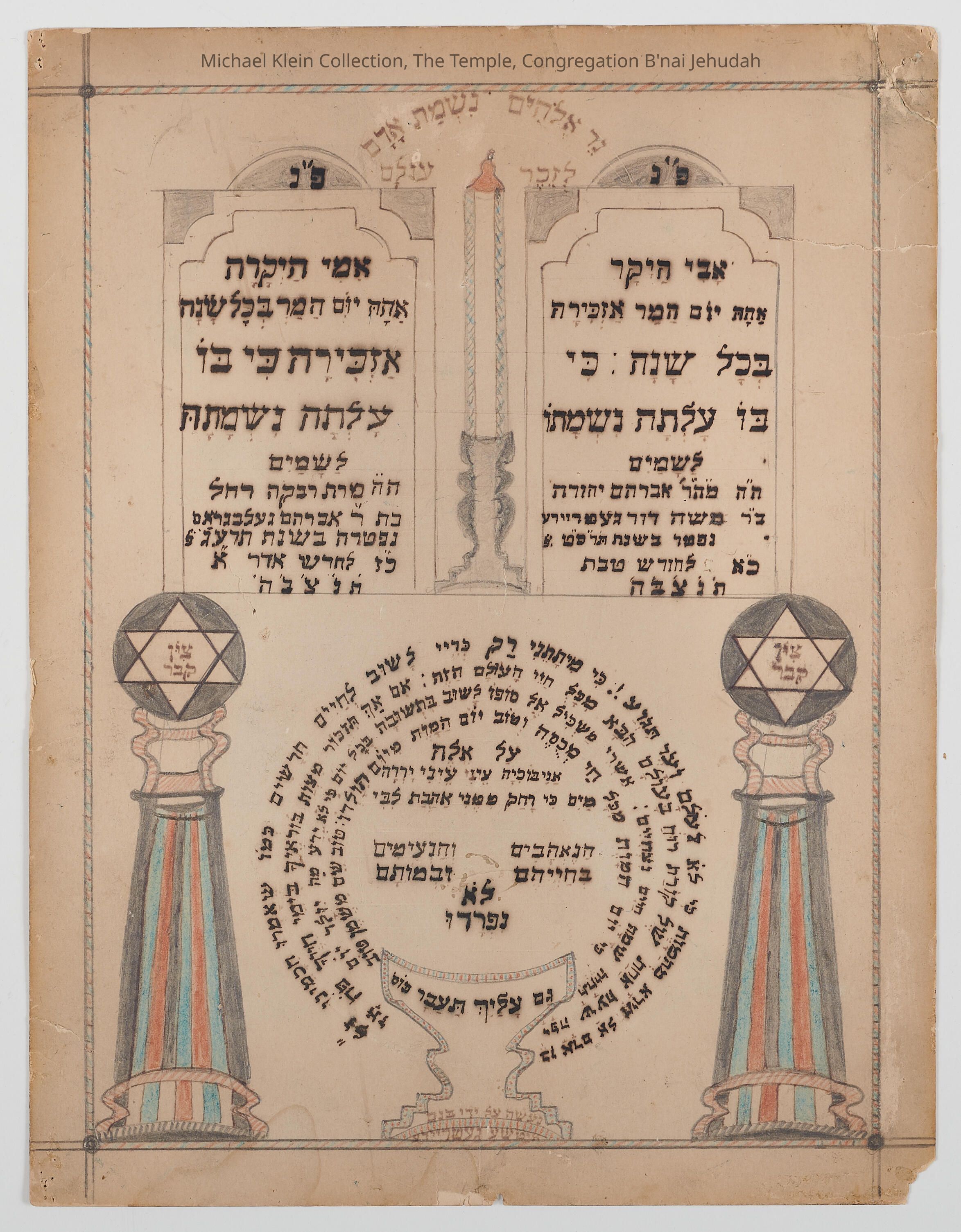 Hand drawn, memorializing father and mother of Itsha Guttreich.Made/Created