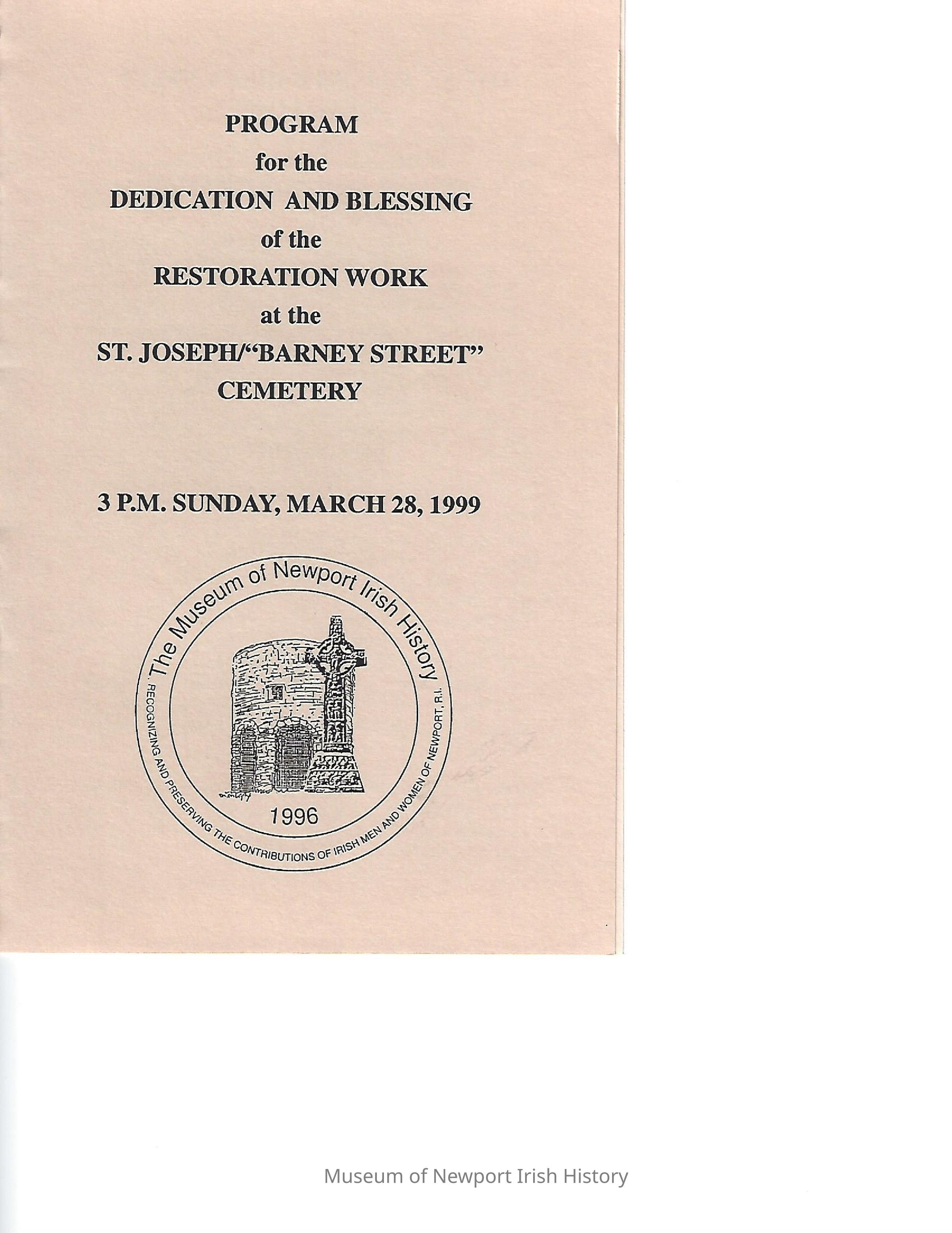 Program for the Dedication and Blessing of the Restoration of the St. Joseph/"Barney Street" Cemetery