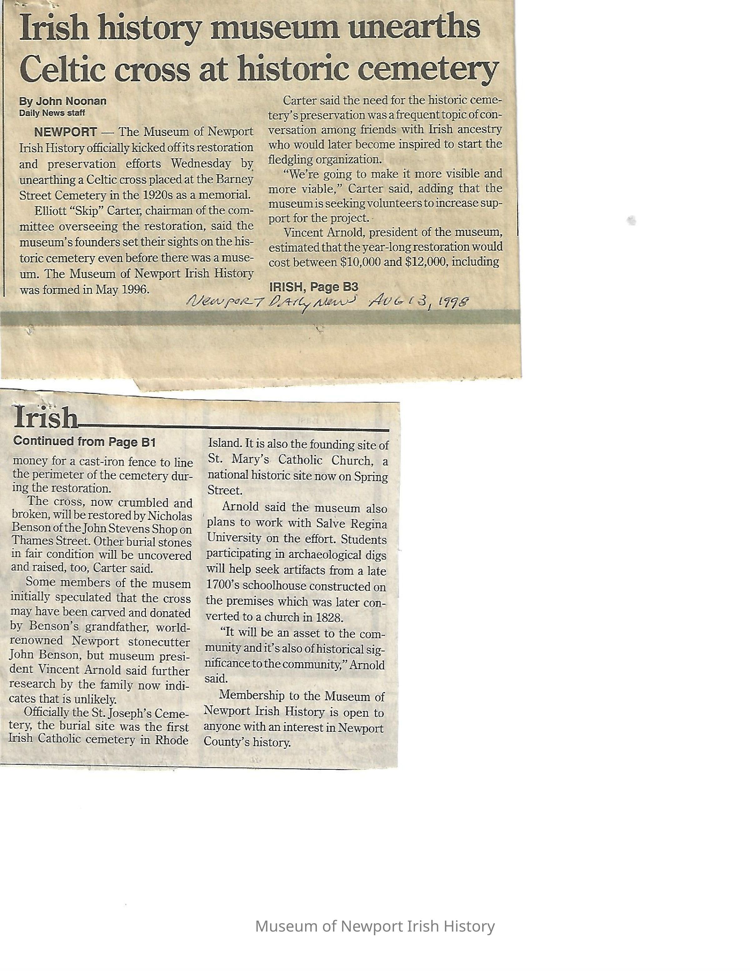 Irish History Museum Unearths Celtic Cross at Historic Cemetery 1998