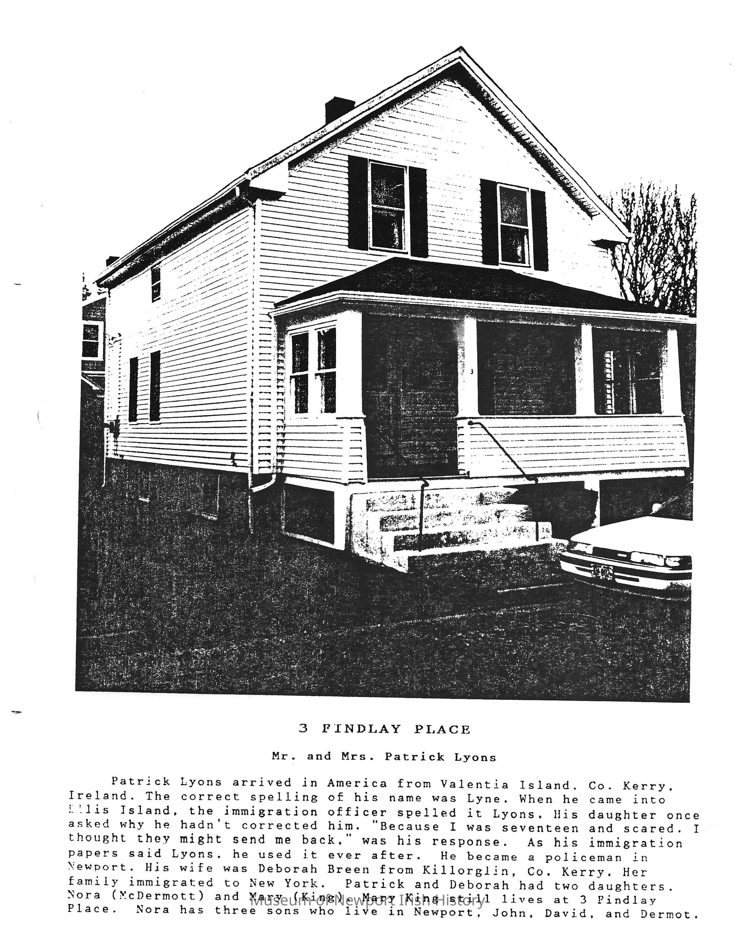 Paragraph and photo of 3 Findlay Place, home of Mr. and Mrs. Patrick Lyons