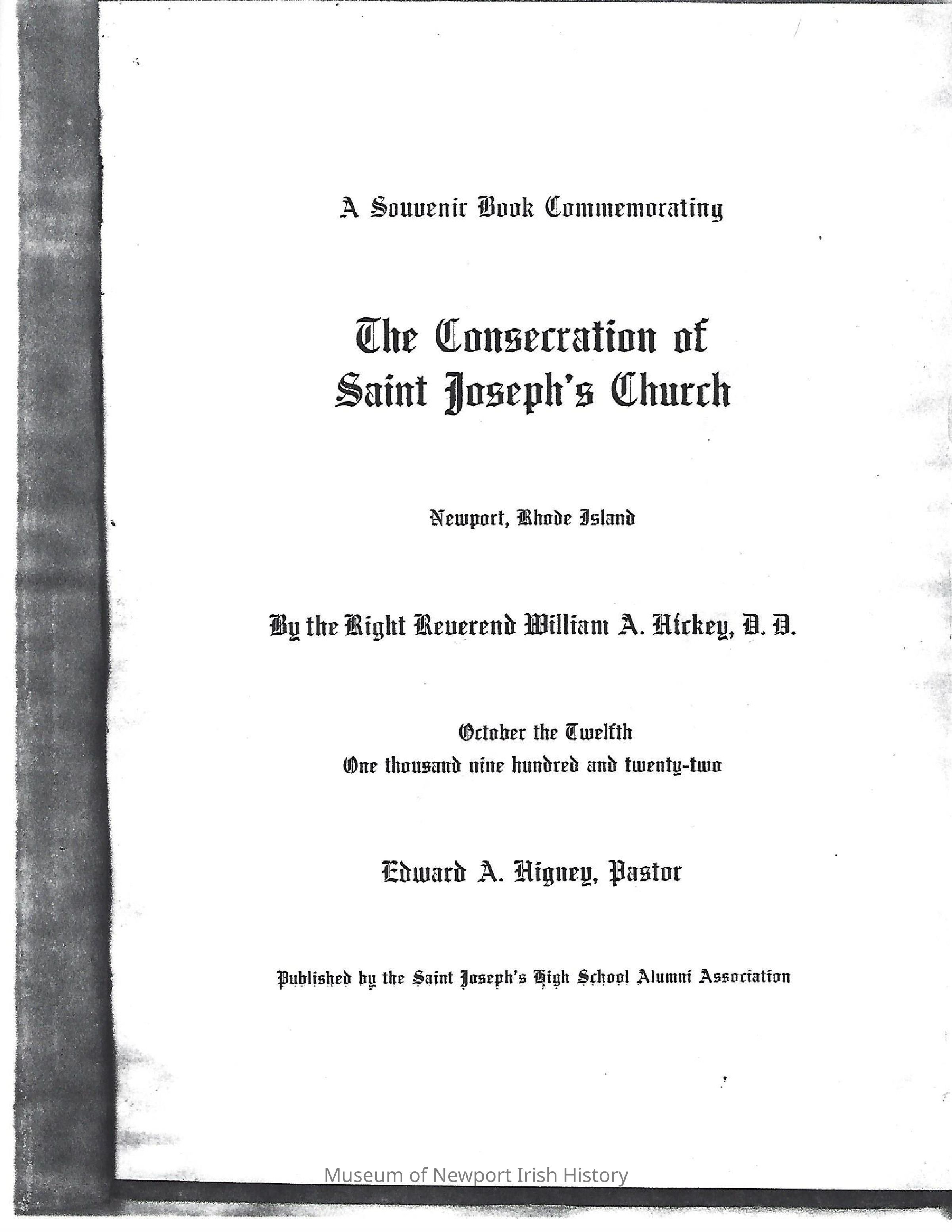 A Souvenir Book Commemorating The Consecration of St. Joseph's Church 1922