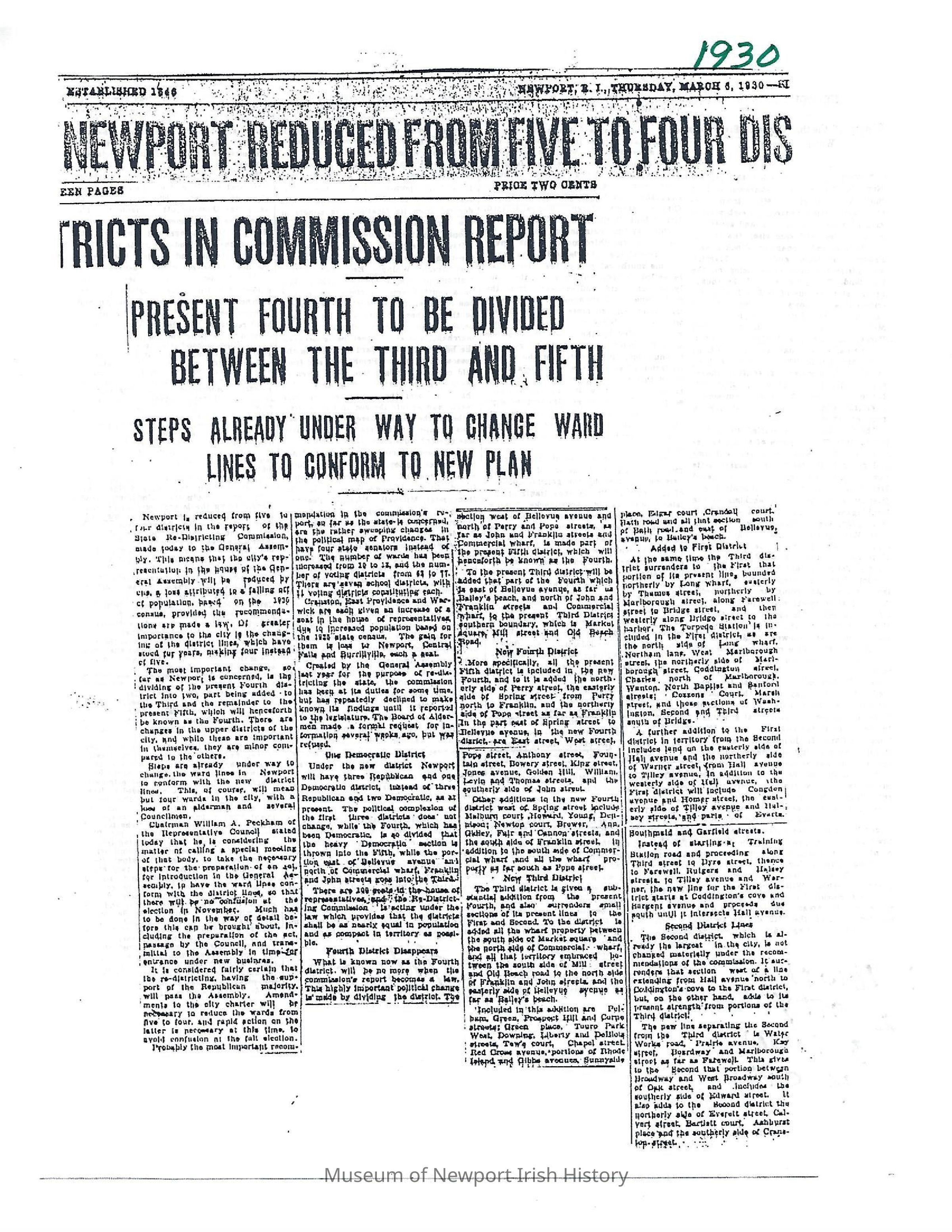 Newport Reduced From Five to Four Districts in Commission Report