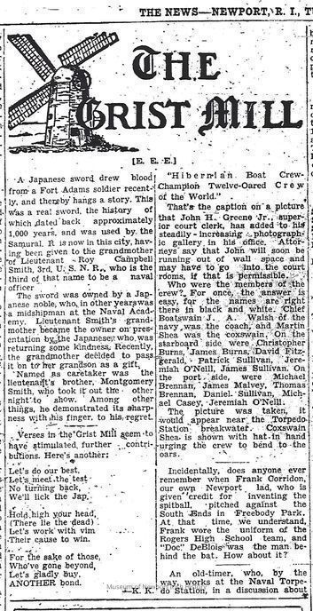 The Grist Mill 12 Oared Boat Crew Champion Roster 1/25/1944