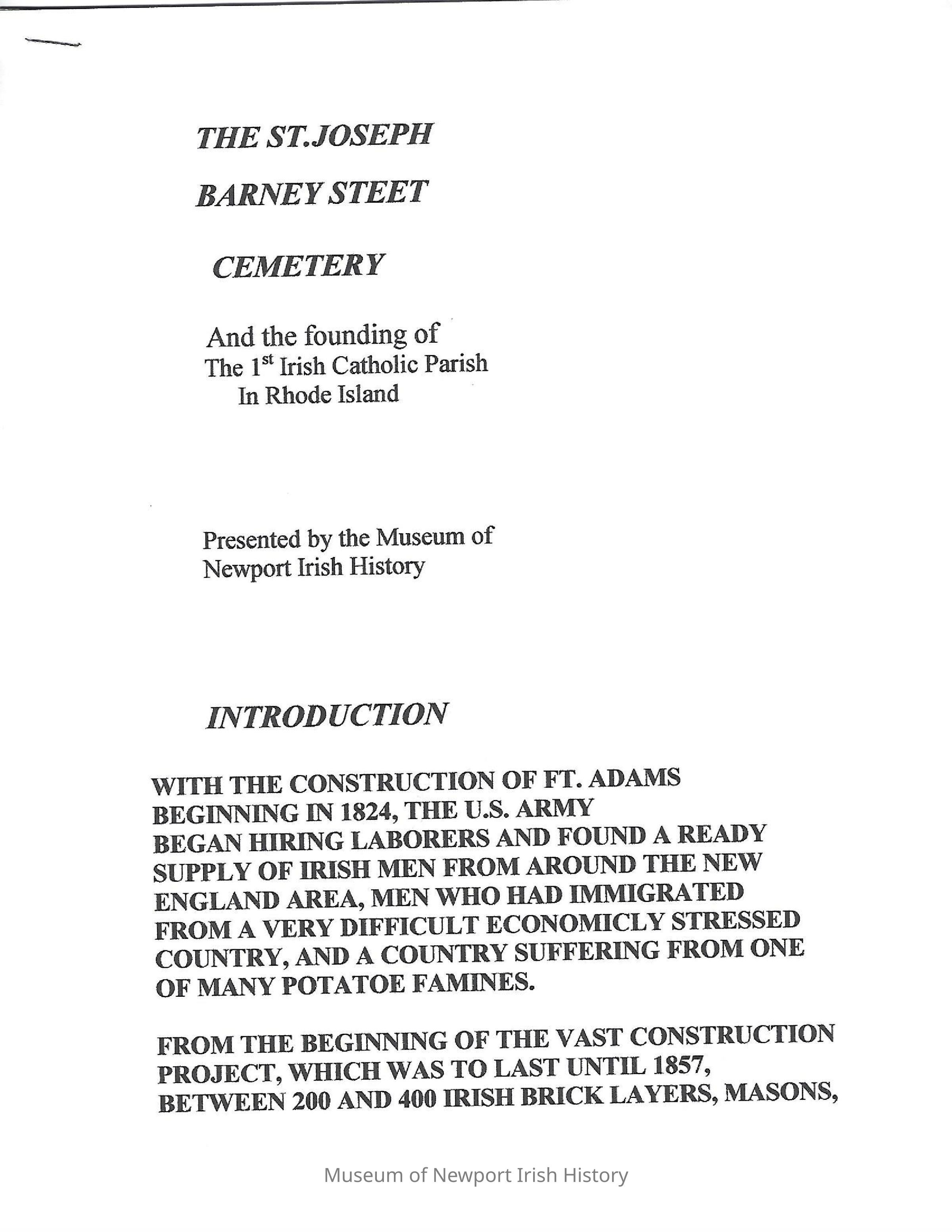 The St. Joseph Barney Street Cemetery Presented by the MNIH