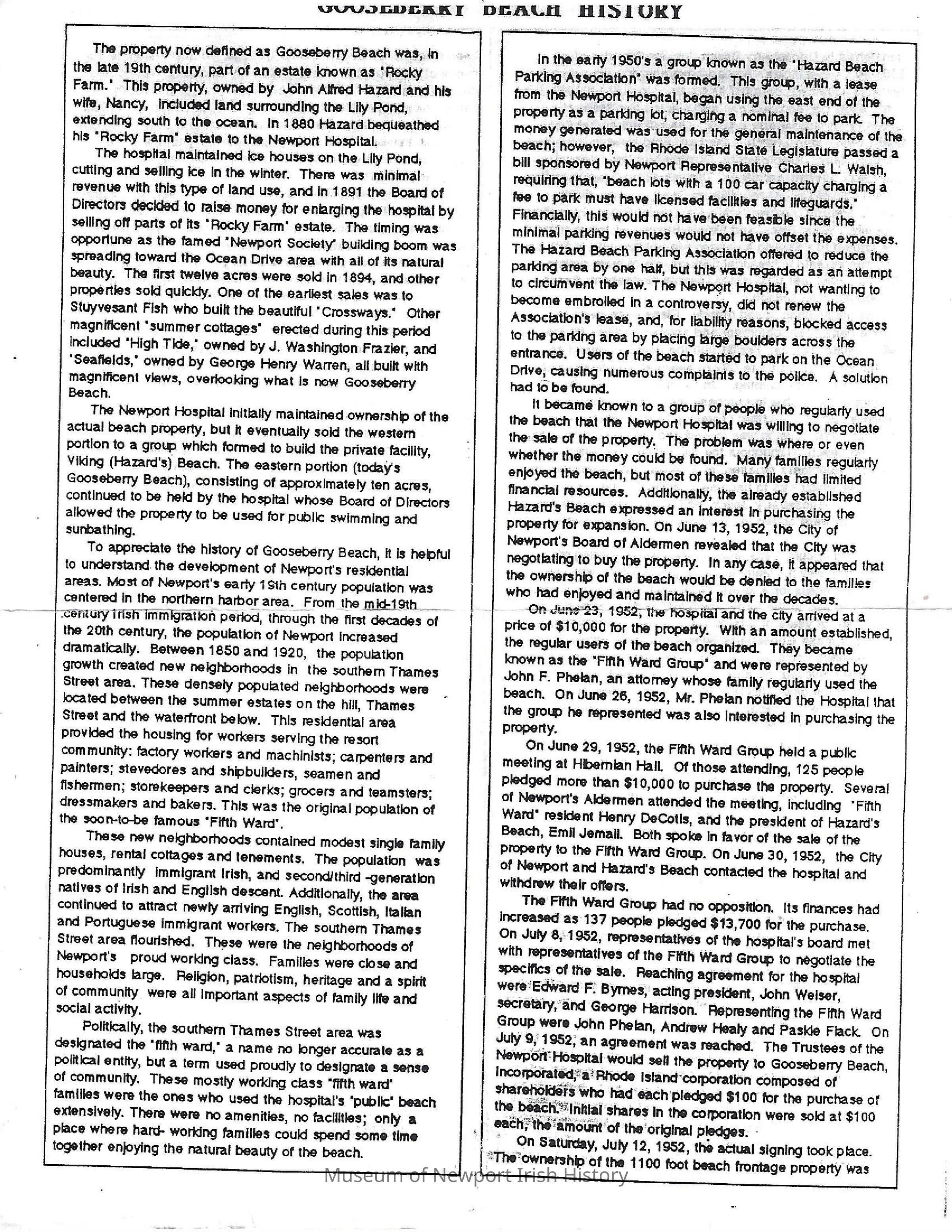 Gooseberry Beach History