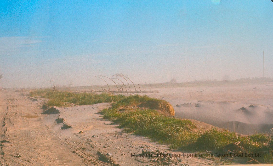 This photo was taken in colour, and was shot in the Wilford area. The subject of the photo is a barren field. The photo is assumed to have been taken later in the day due to the light saturation. According to the notes from the donor there was a minor dust storm that they captured in that moment. The photo is a part of a digital collection donated to the museum by Rick Davis.