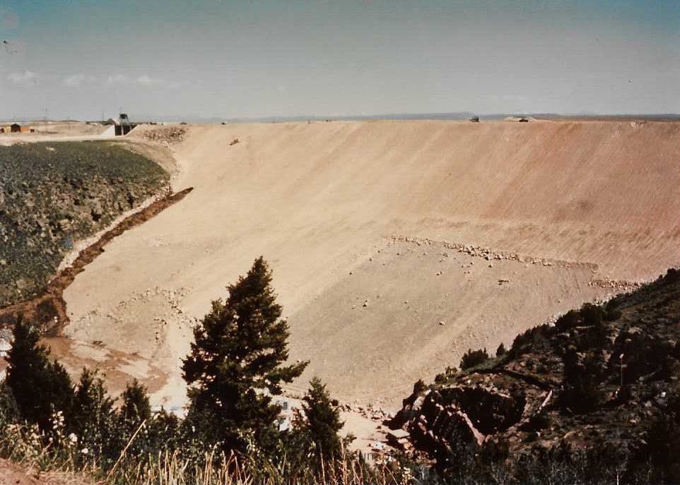 This photo is in color and shows the hole in the dame when it was first starting to give way. There is not a whole lot of water coming threw at this point. This photo is in landscape position.