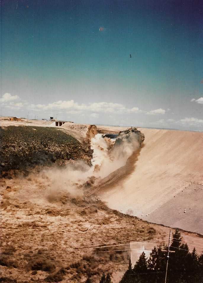 This photo is 3.5 x 5 inches big. This photo was taken by Dale Howard. Dale was from Saint Anthony, Idaho. He had come up from South Dakota where he taught school. He was one Spring Break when he was touring the Teton Dam when he took this set of photos of the dam breaking. He was with his family at the time. His photos were later featured in the Time Magazine Our Next President (Pick One) dated June 21, 1976. The article containing Dale Howard's photos starts on page 56 titled 'Teton: Eyewitness to Disaster'.
