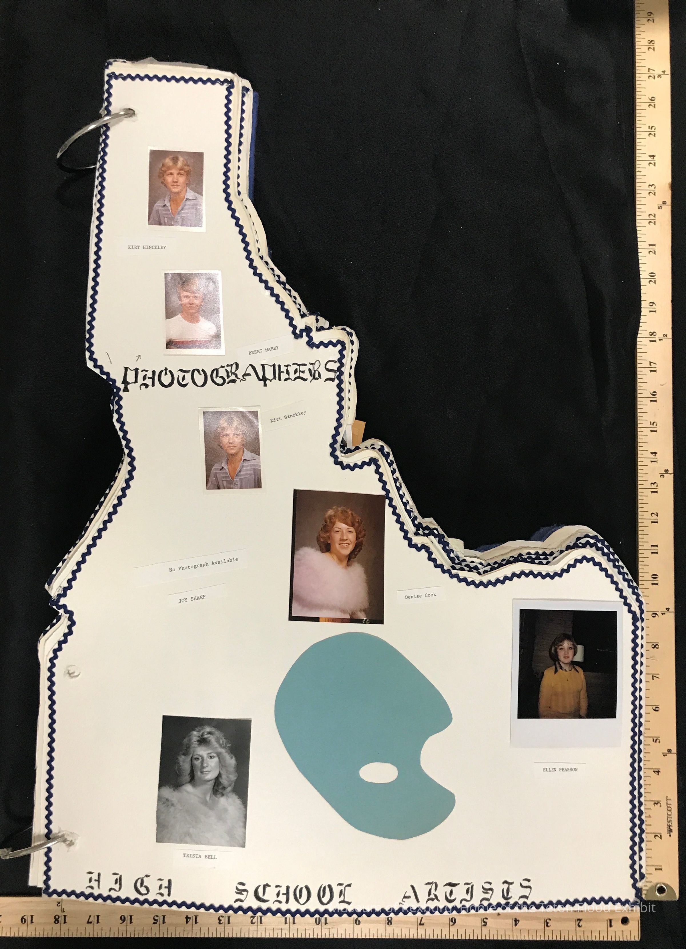 First page of the scrapbook, showing the photographers that contributed to the scrapbook: Kirt Hinkley (shown twice), Brent Mabey, Joy Sharp (no photo), Denise Cook, Trista Bell & Ellen Pearson.