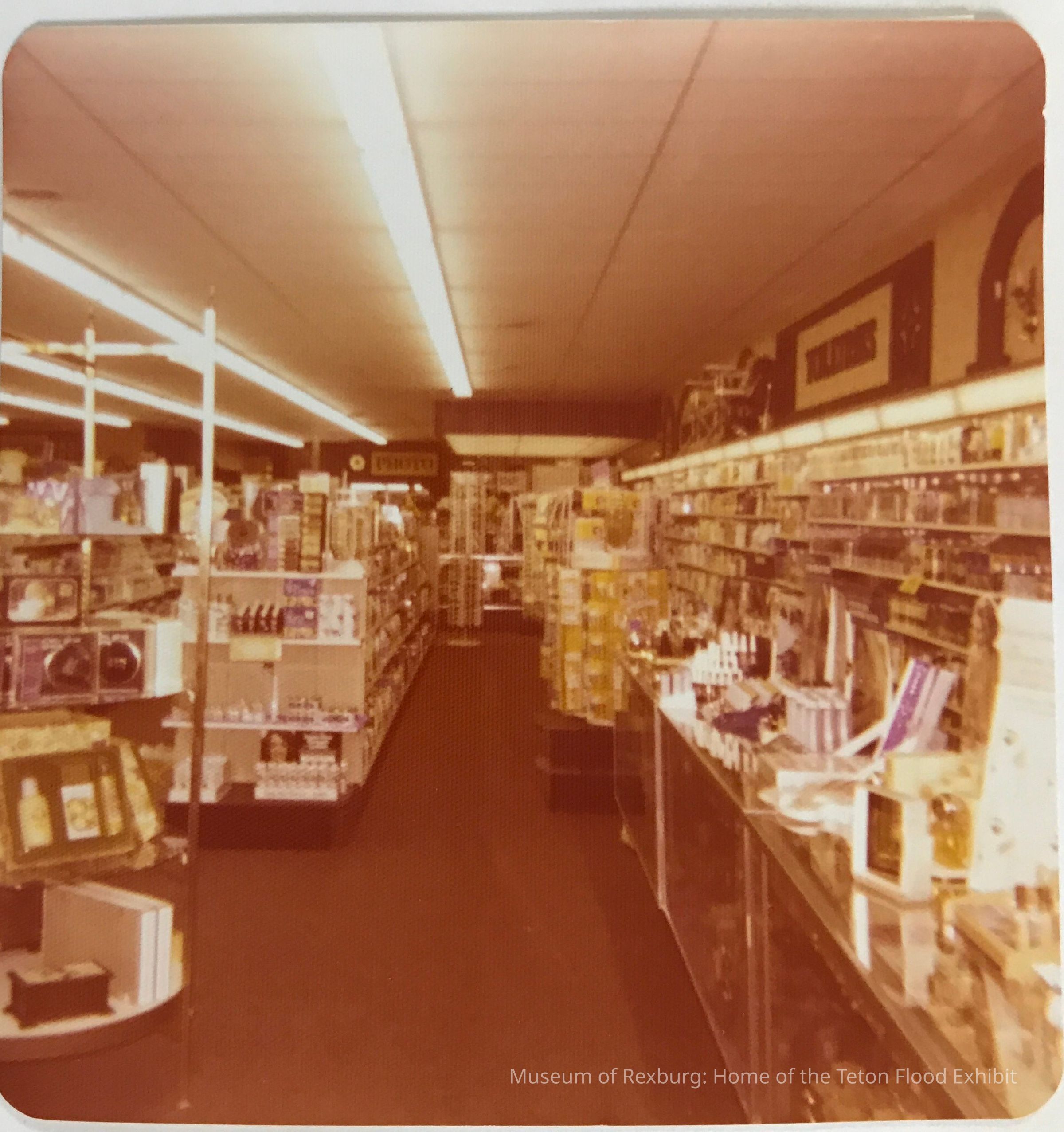 A view of the new interior at Johnson Drug after the store was rebuilt. These photos are contained within a report on the damage & restoration of Johnson Drug.