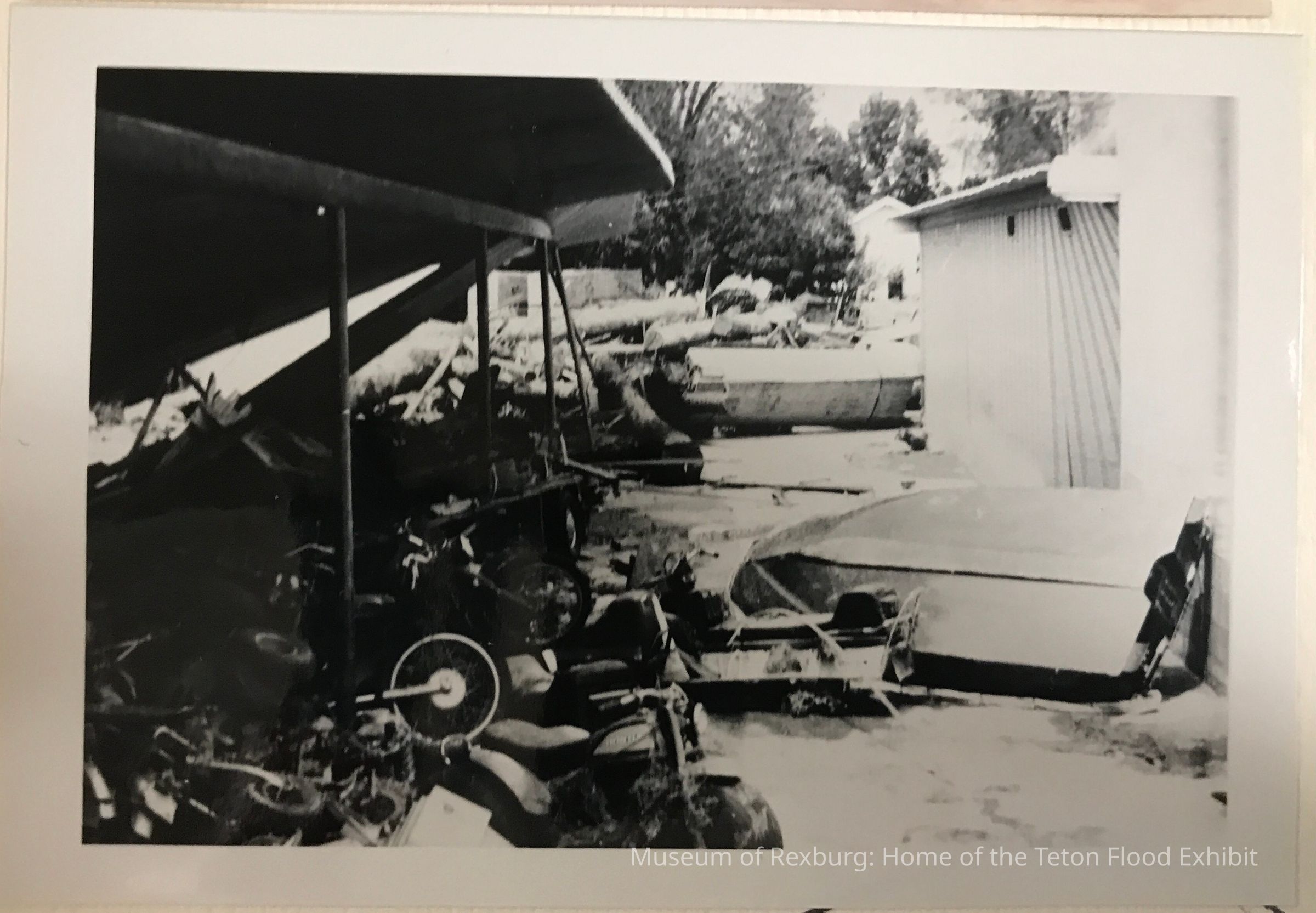 Thompson's - the 3rd photo of 3 on the front of the scrapbook page. This is also B&W & shows more flood damage and debris: boats, motorcycles etc.