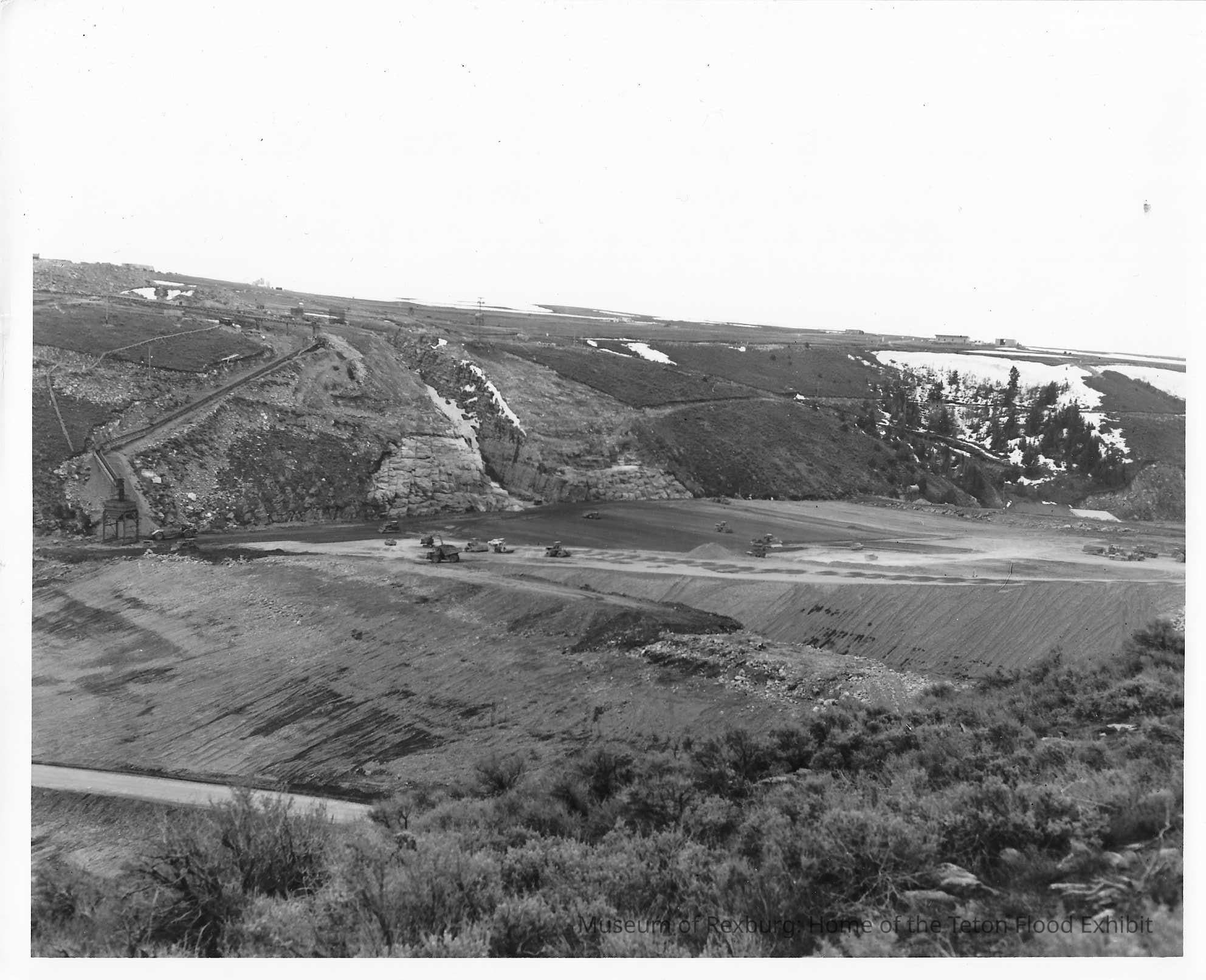 Six black and white photographs of the Teton Dam. (Note: Condition tag in photograph reads 2019-13-007A-F, these photographs were taken before the artifacts were placed into the Photographs category).