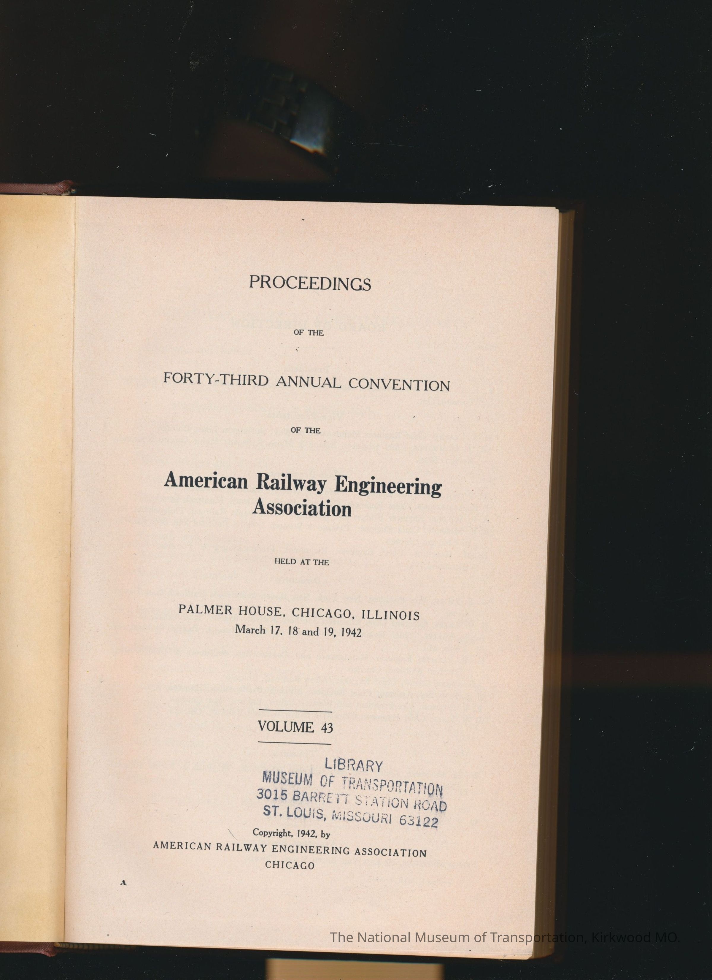 American Railway Engineering Association, Vol. 43: Proceedings of the 43rd Annual Convention, March 1942.Entry/Object ID