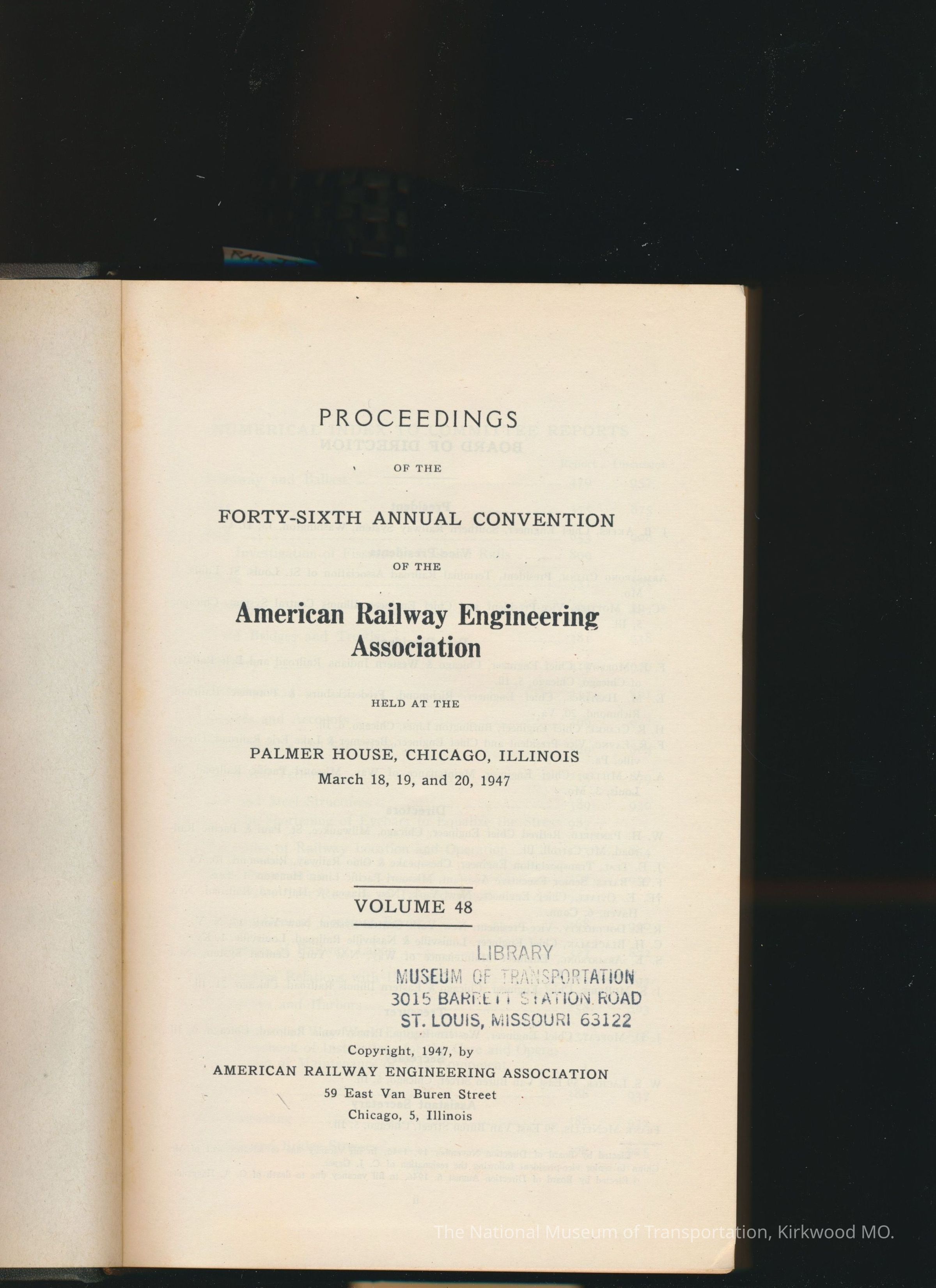 American Railway Engineering Association, Vol. 48: Proceedings of the 46th Annual Convention, March 1947.Entry/Object ID