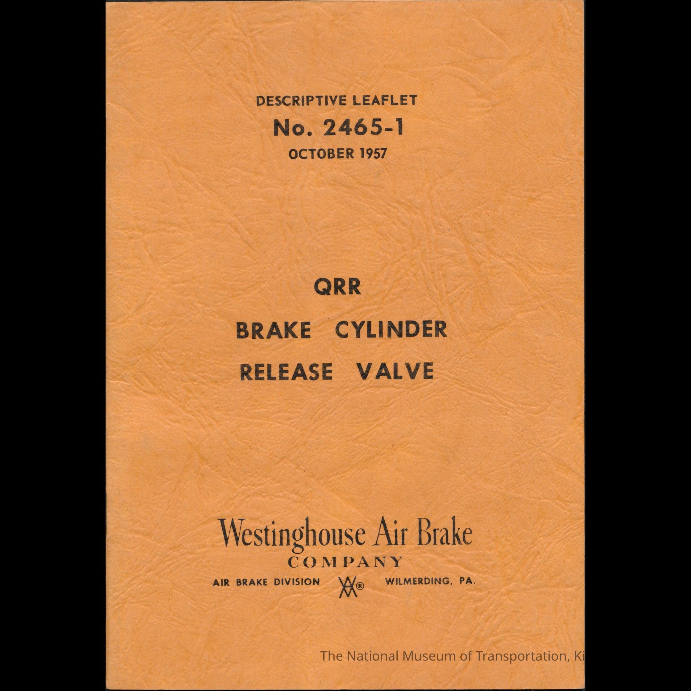 Descriptive Leaflet No. 2465-1, October 1957: QRR Brake Cylinder Release Valve.Entry/Object ID
