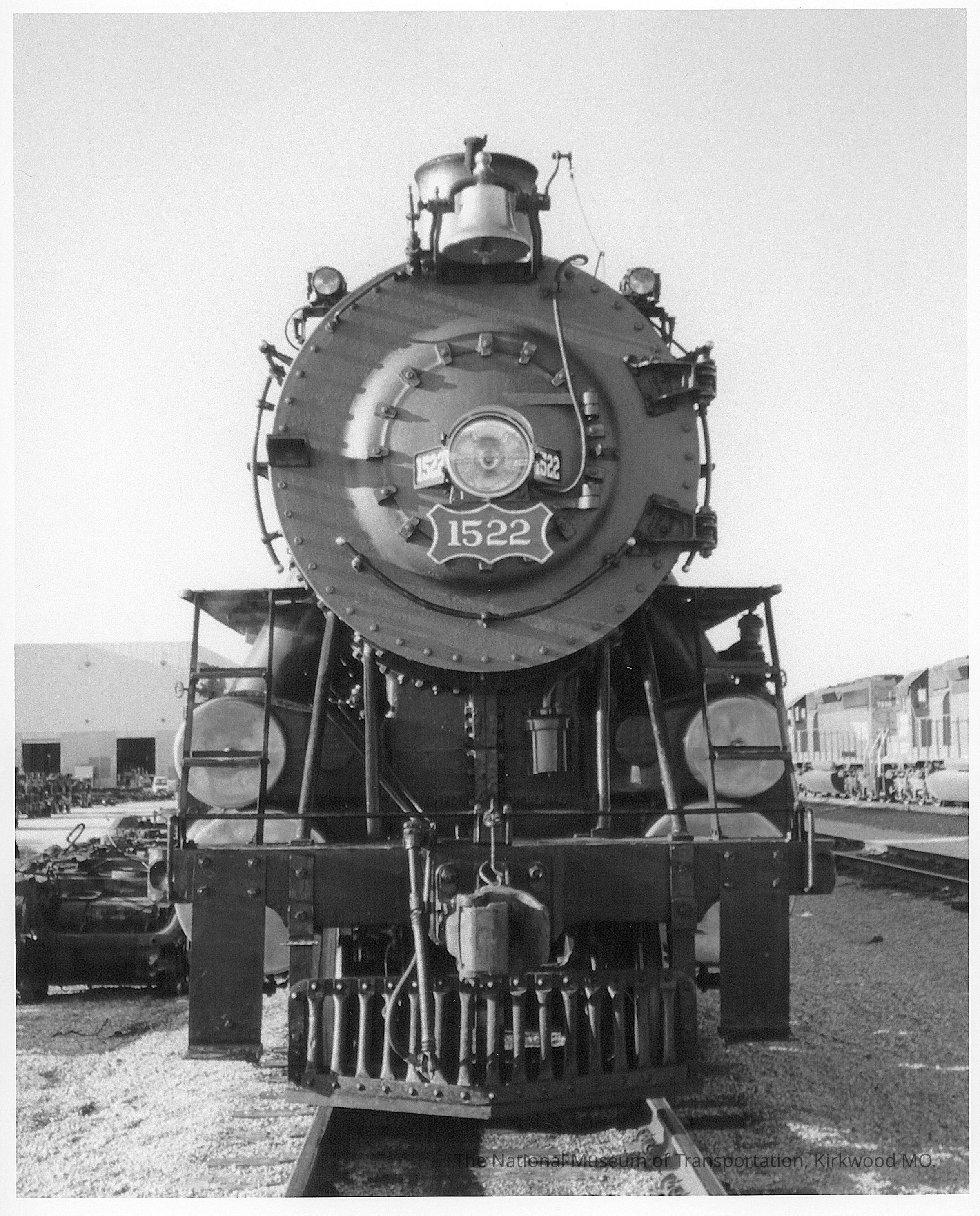 A head-on view of Frisco 1522 in rail yard. Date unspecified.Photograph Details