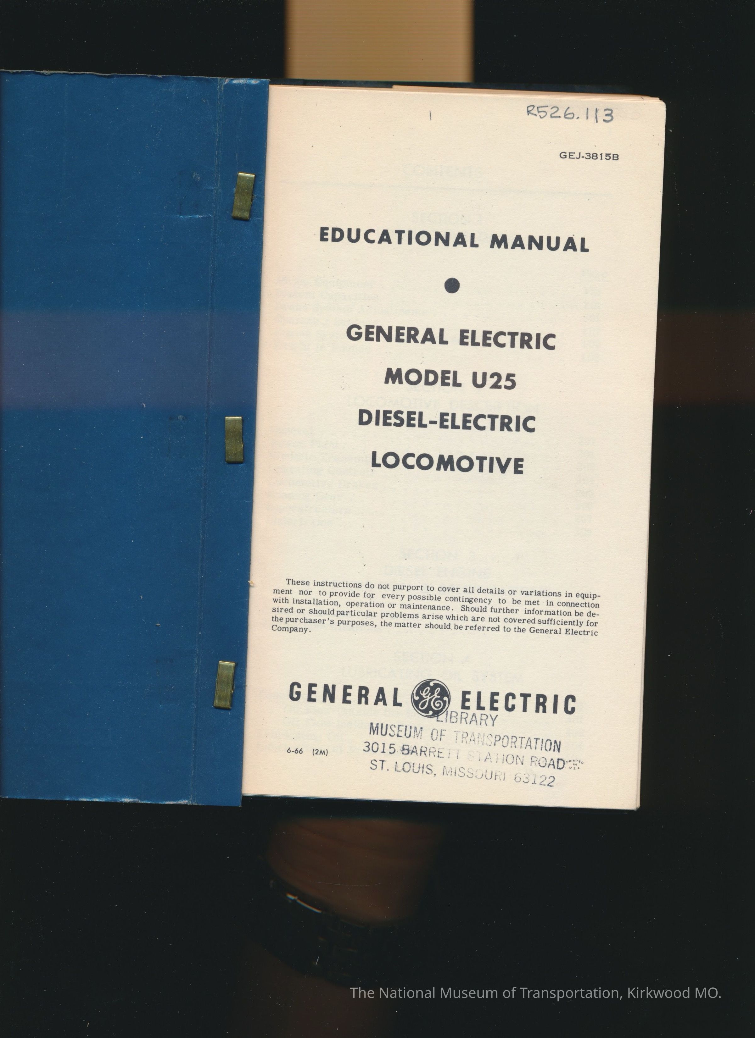 General Electric - Educational Manual, Model U25 Diesel-electric Locomotive. Document GEJ-3815.Entry/Object ID