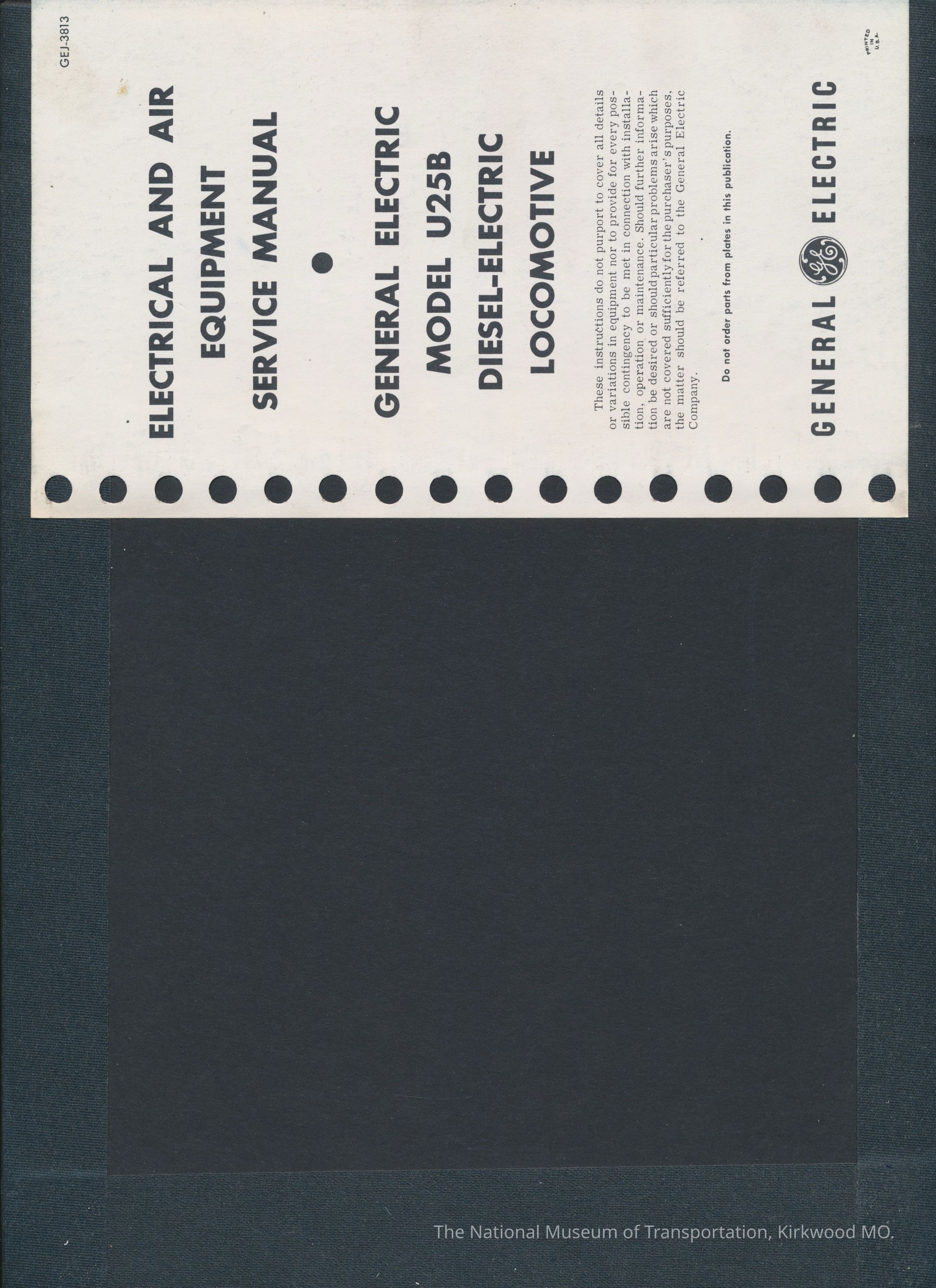 General Electric - Electrical and Air Equipment Service Manual, Model U25B Diesel-Electric Locomotive. Document GEJ-3813.Entry/Object ID